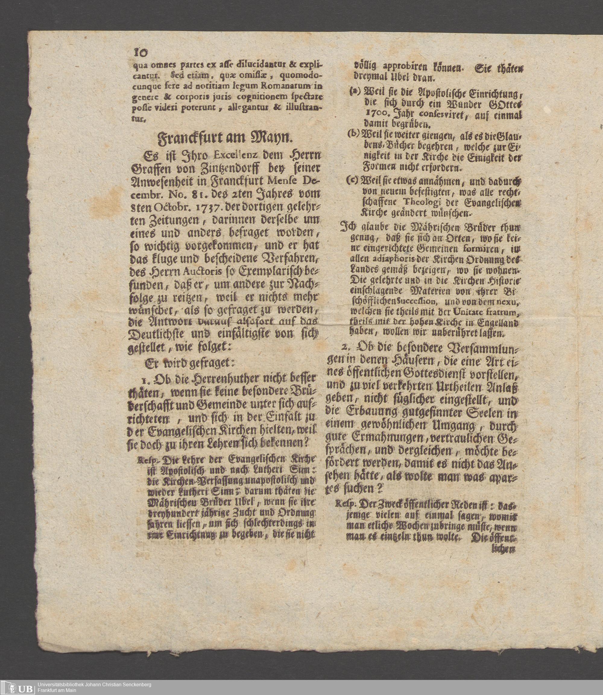 Na 31 Nachlass Johann Christian Senckenberg, 150 - Druckschriften Nikolaus Ludwig von Zinsendorfs