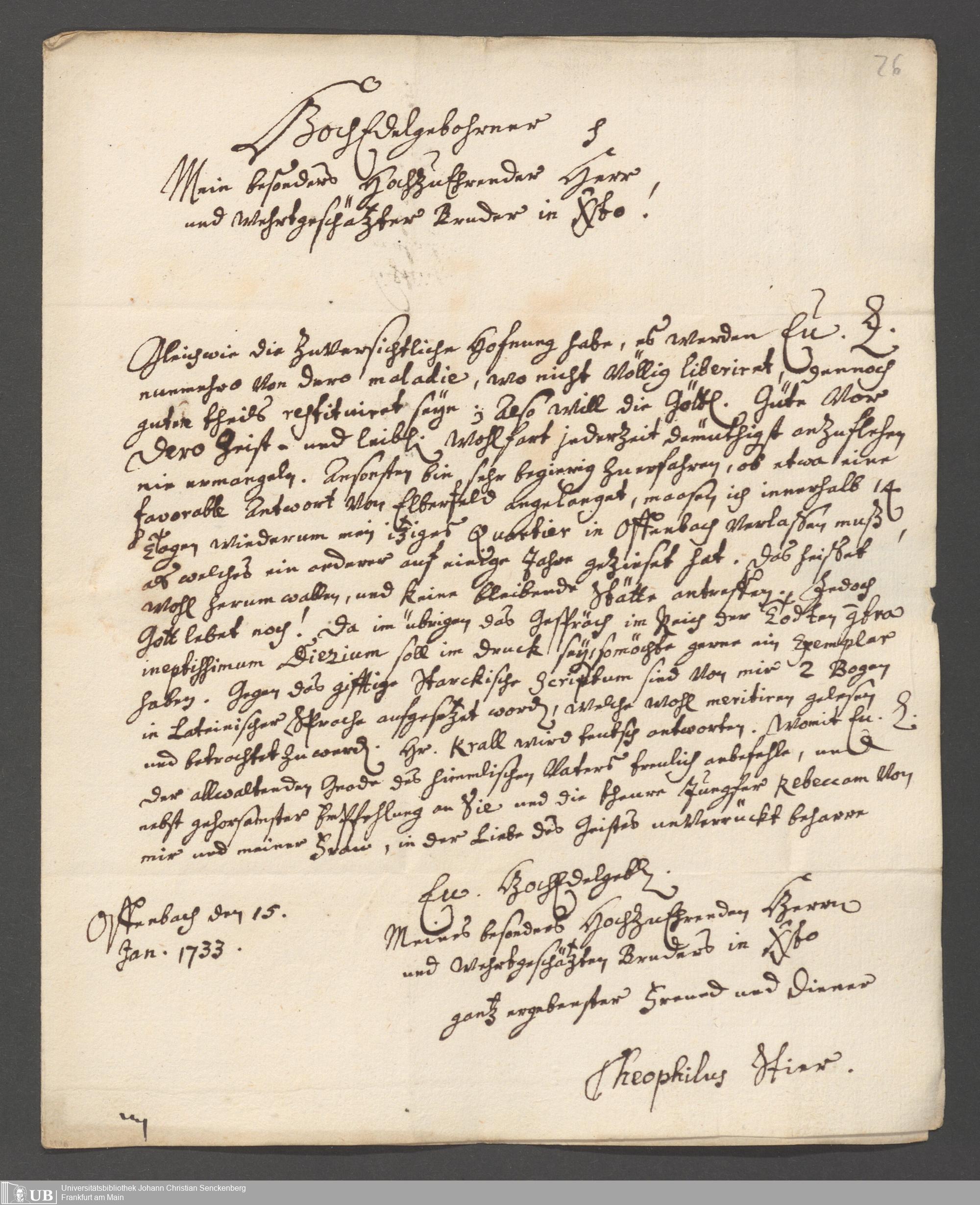 Na 31 Nachlass Johann Christian Senckenberg, 162 - Theologische Schriften von Johann Stier