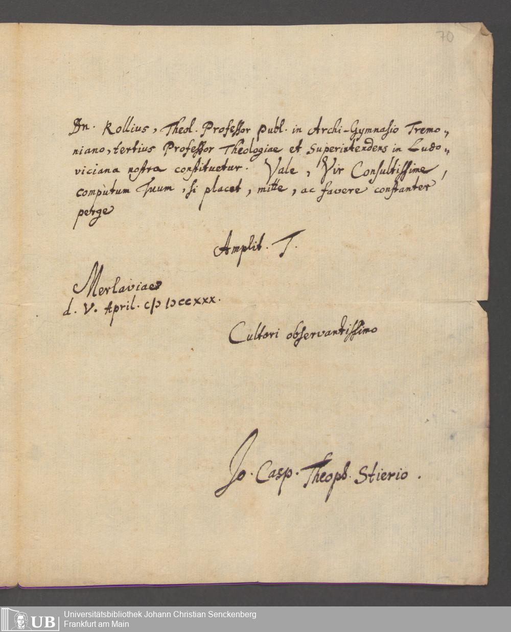 Na 31 Nachlass Johann Christian Senckenberg, 162 - Theologische Schriften von Johann Stier