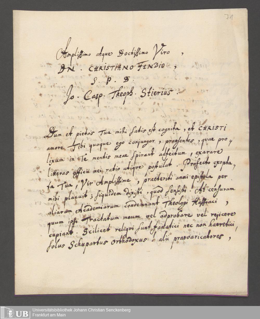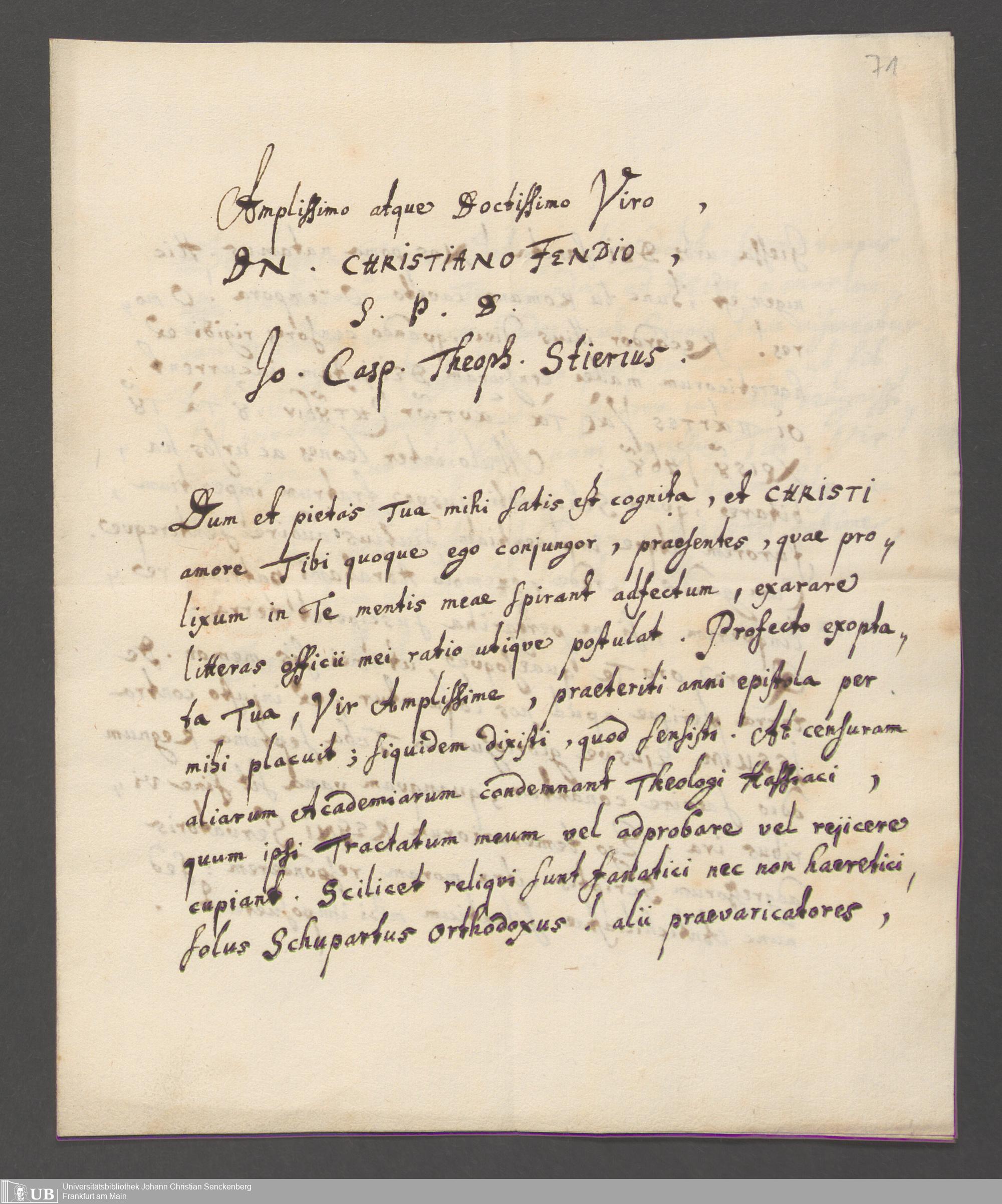 Na 31 Nachlass Johann Christian Senckenberg, 162 - Theologische Schriften von Johann Stier