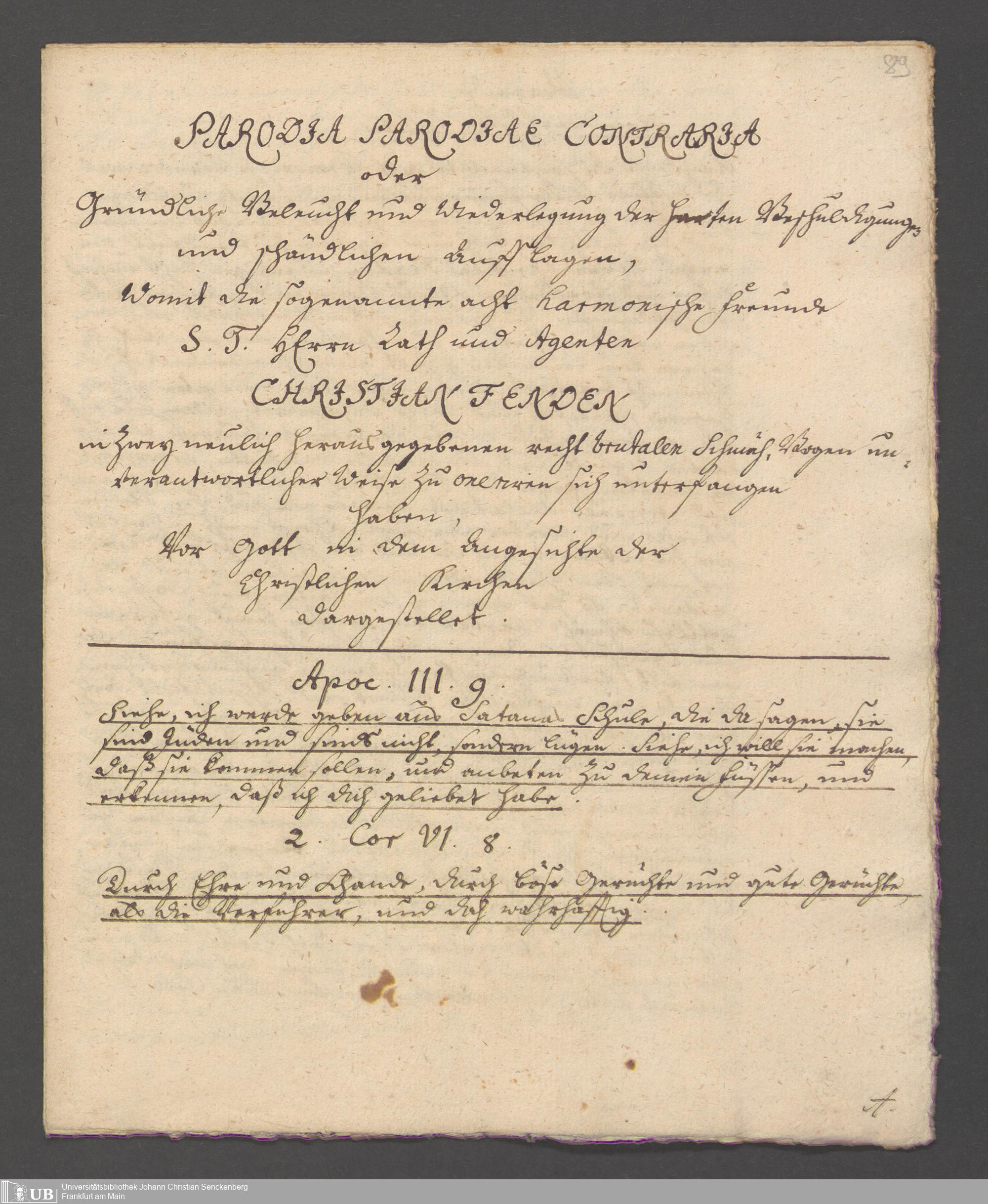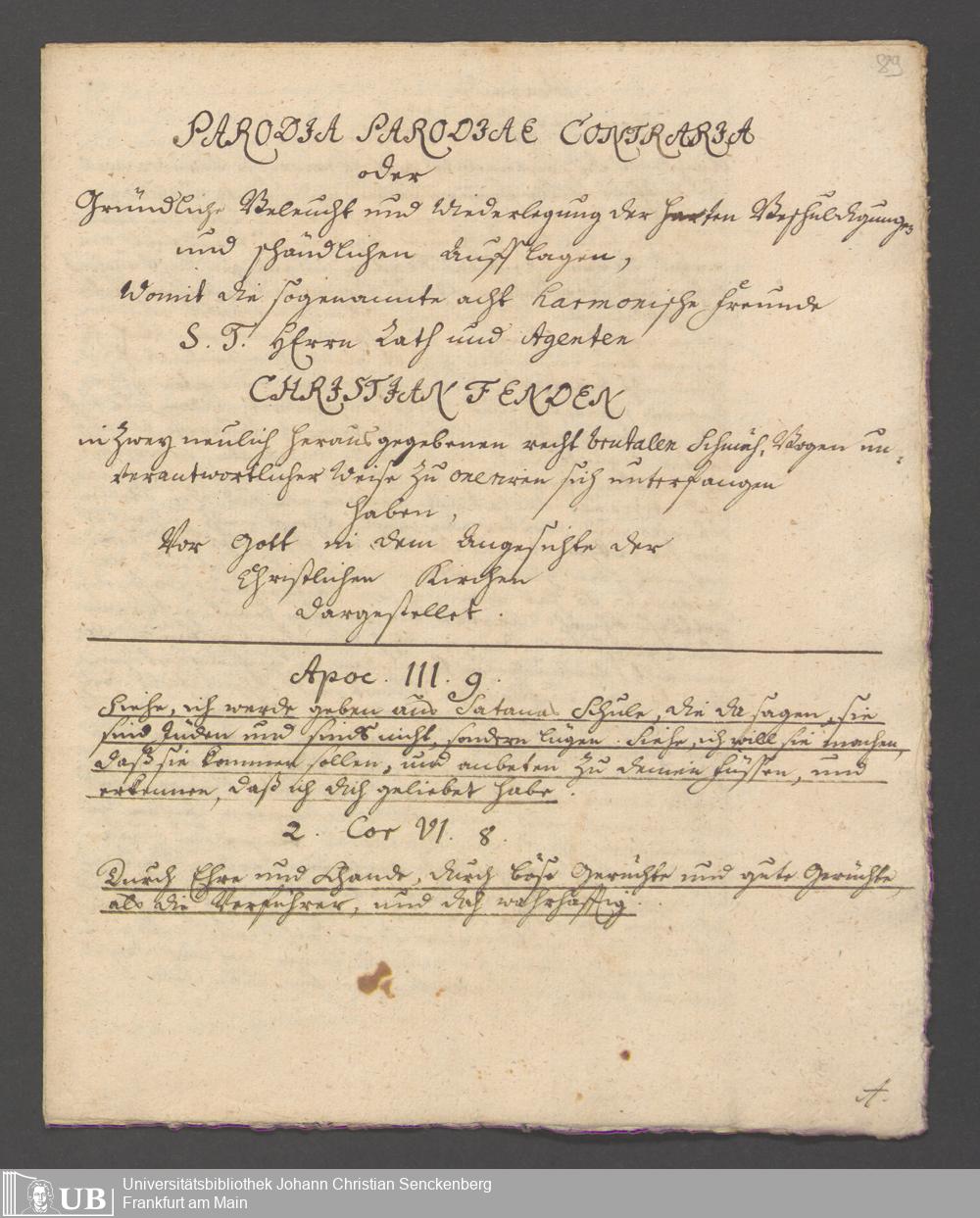 Na 31 Nachlass Johann Christian Senckenberg, 163 - Theologische Schriften von Fende