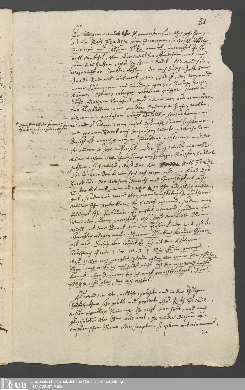 Na 31 Nachlass Johann Christian Senckenberg, 163 - Theologische Schriften von Fende