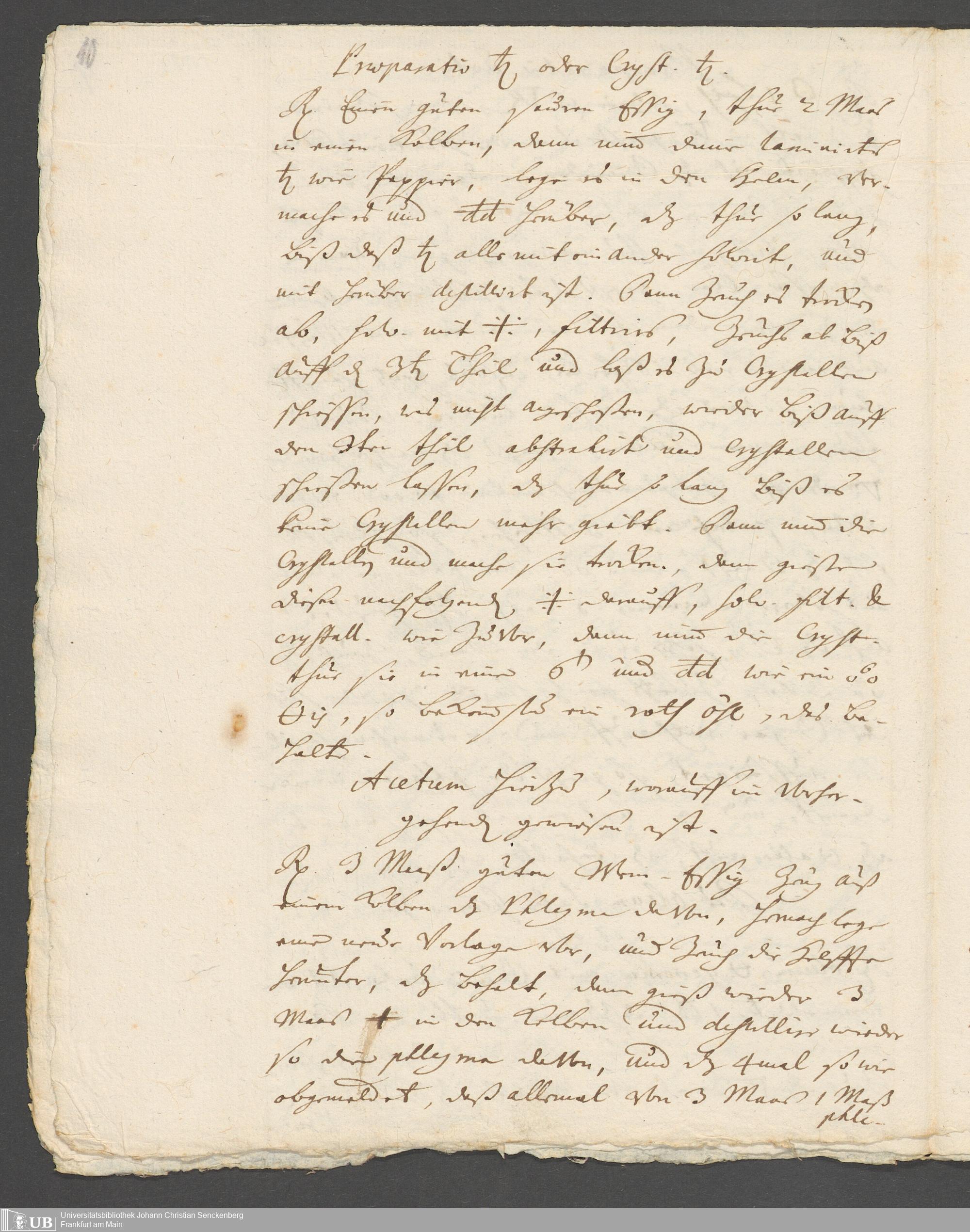 Na 31 Nachlass Johann Christian Senckenberg, 183 - Aufzeichnungen zu chemischen Prozessen