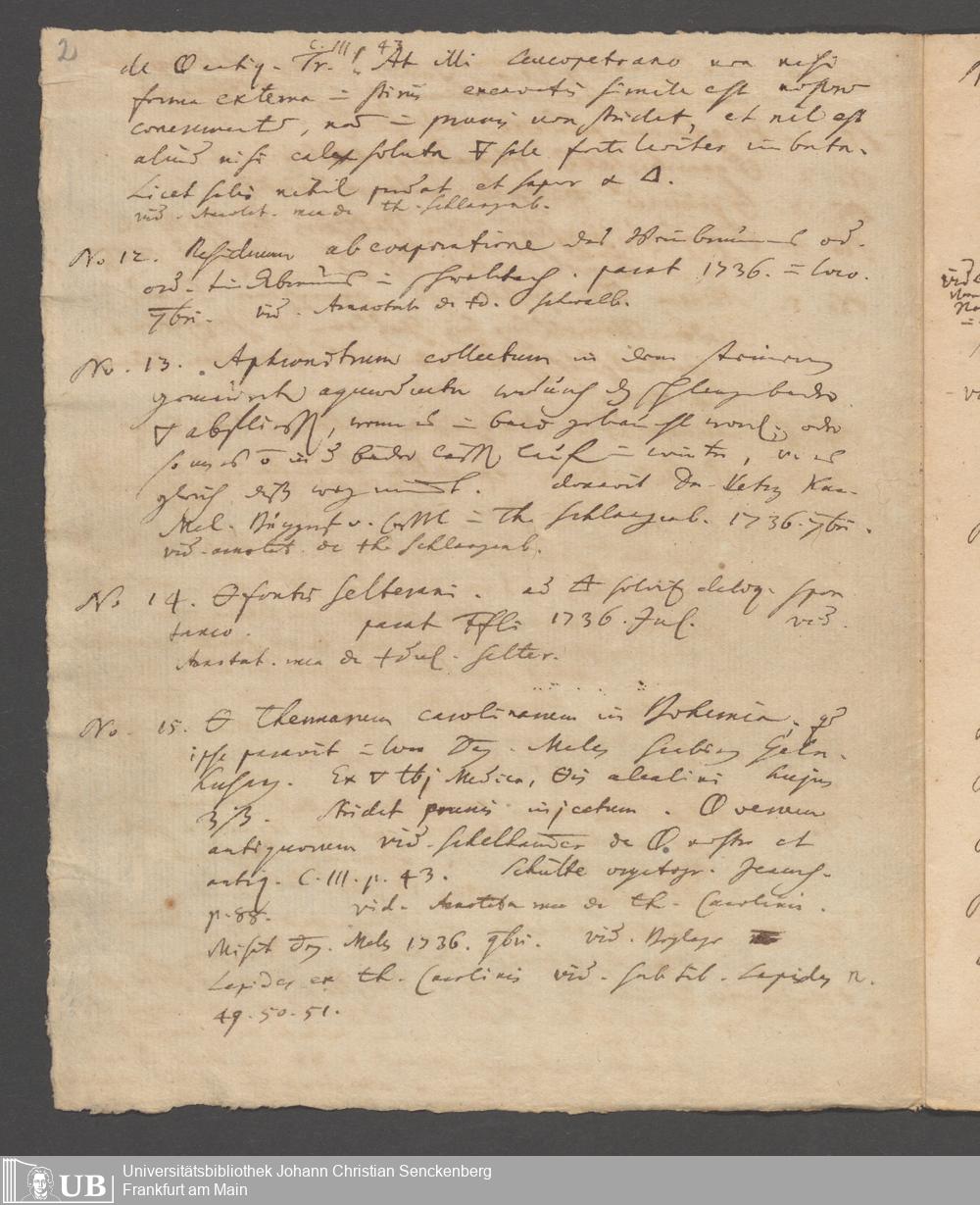 Na 31 Nachlass Johann Christian Senckenberg, 186 - Aufzeichnungen zur Mineralogie
