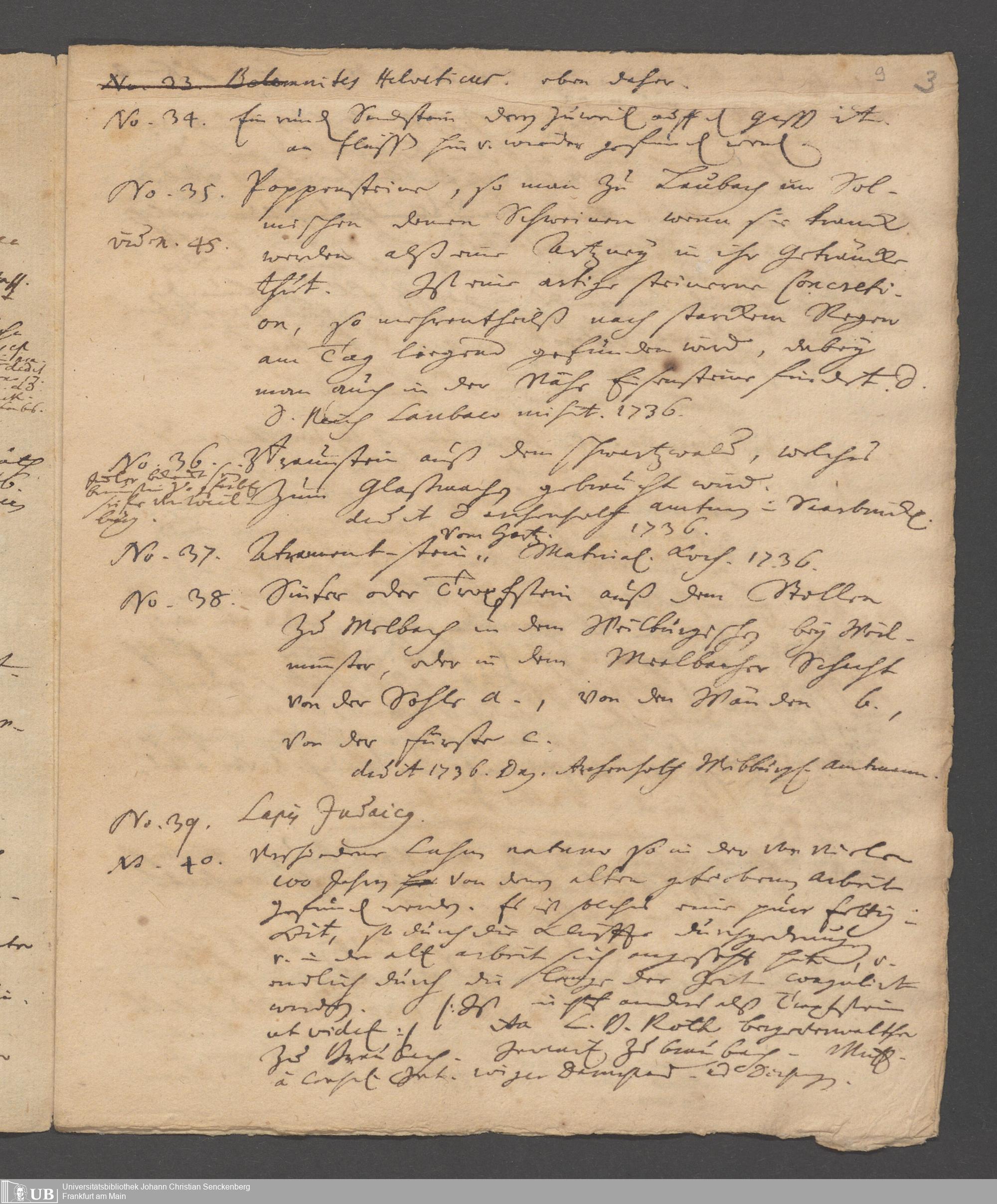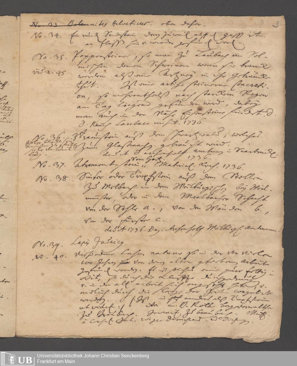 Na 31 Nachlass Johann Christian Senckenberg, 186 - Aufzeichnungen zur Mineralogie