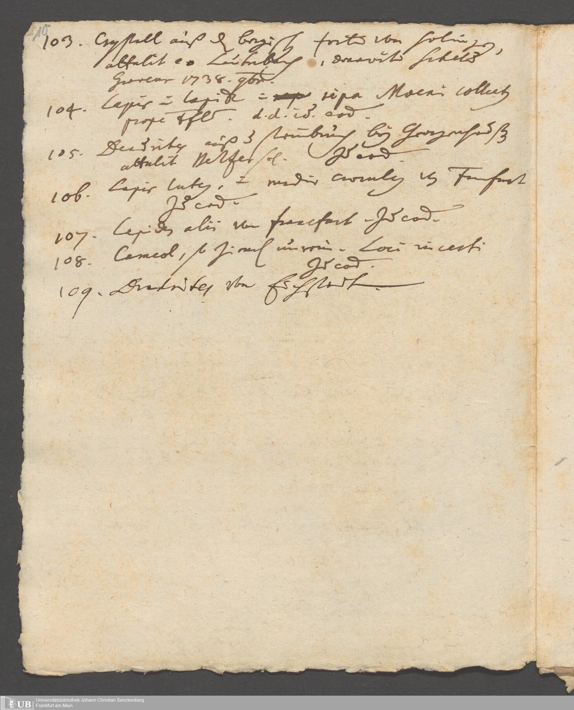 Na 31 Nachlass Johann Christian Senckenberg, 186 - Aufzeichnungen zur Mineralogie