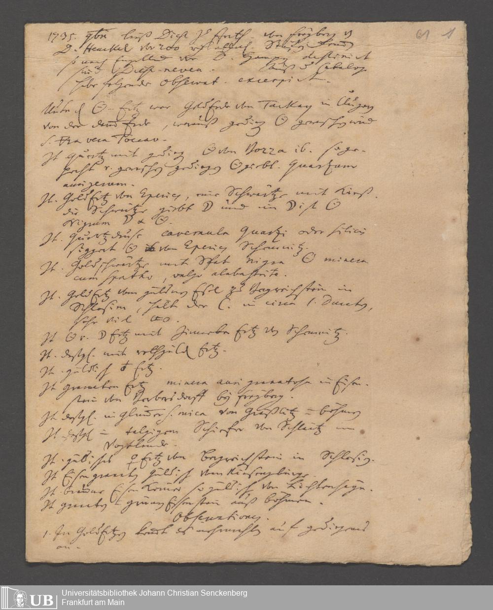 Na 31 Nachlass Johann Christian Senckenberg, 186 - Aufzeichnungen zur Mineralogie
