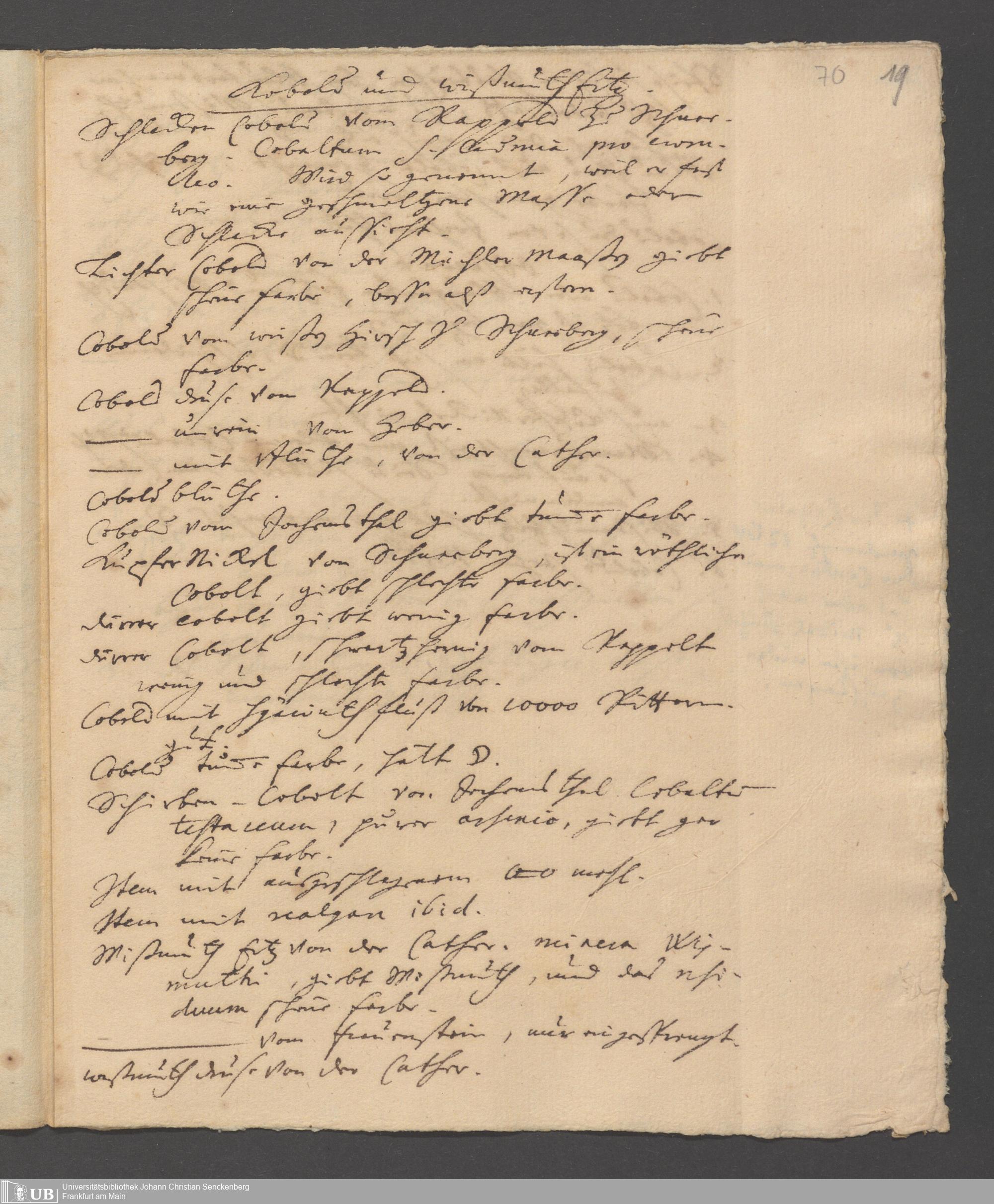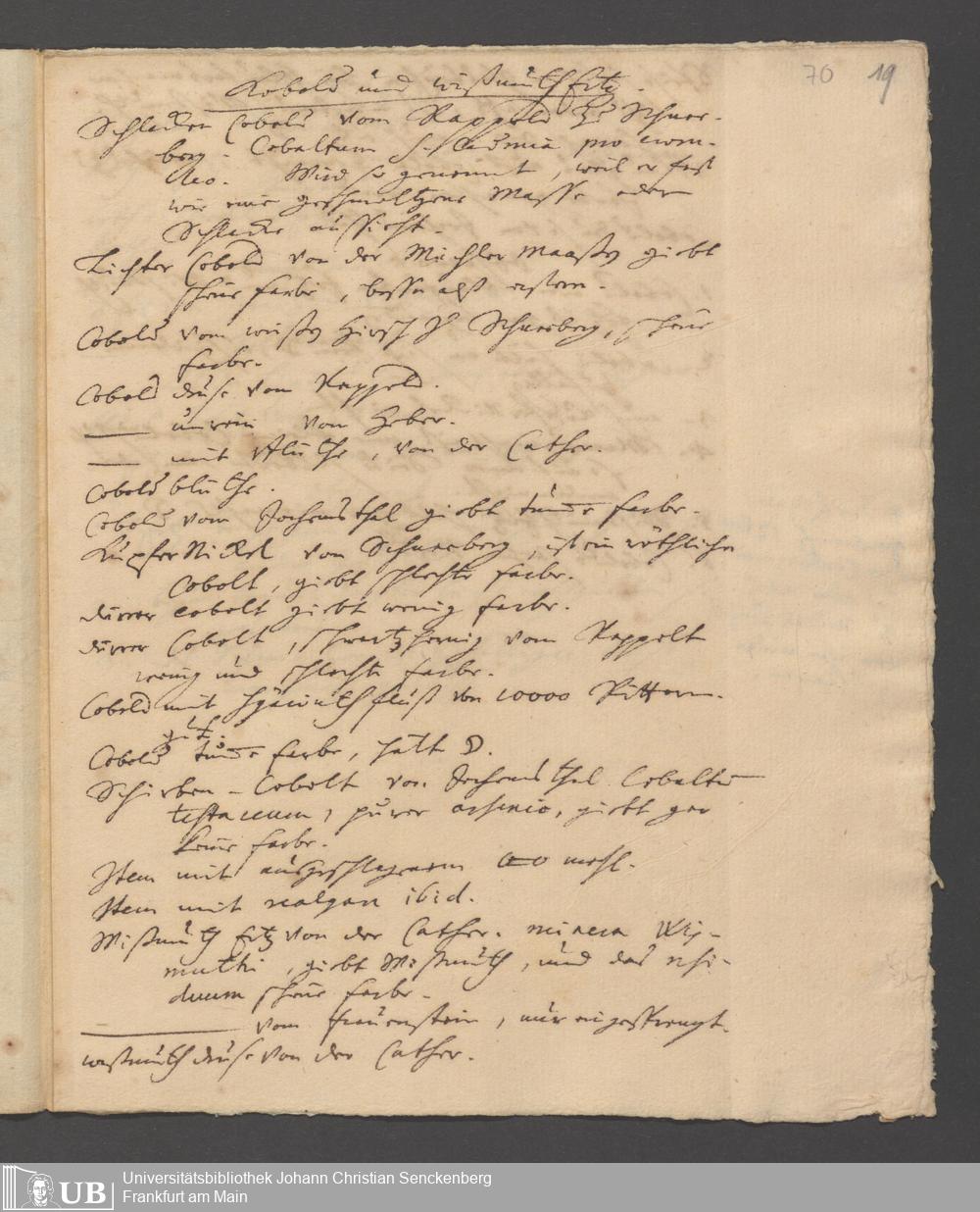 Na 31 Nachlass Johann Christian Senckenberg, 186 - Aufzeichnungen zur Mineralogie