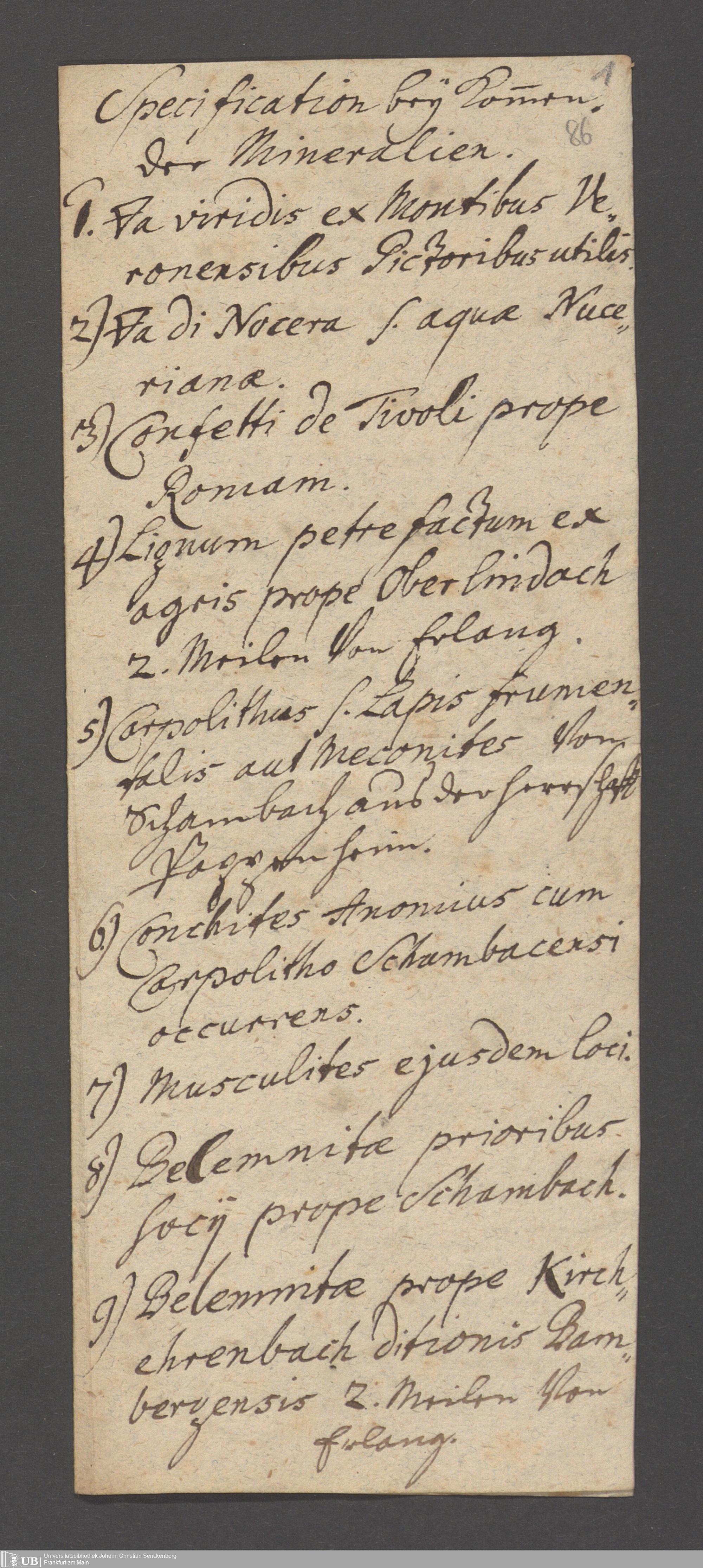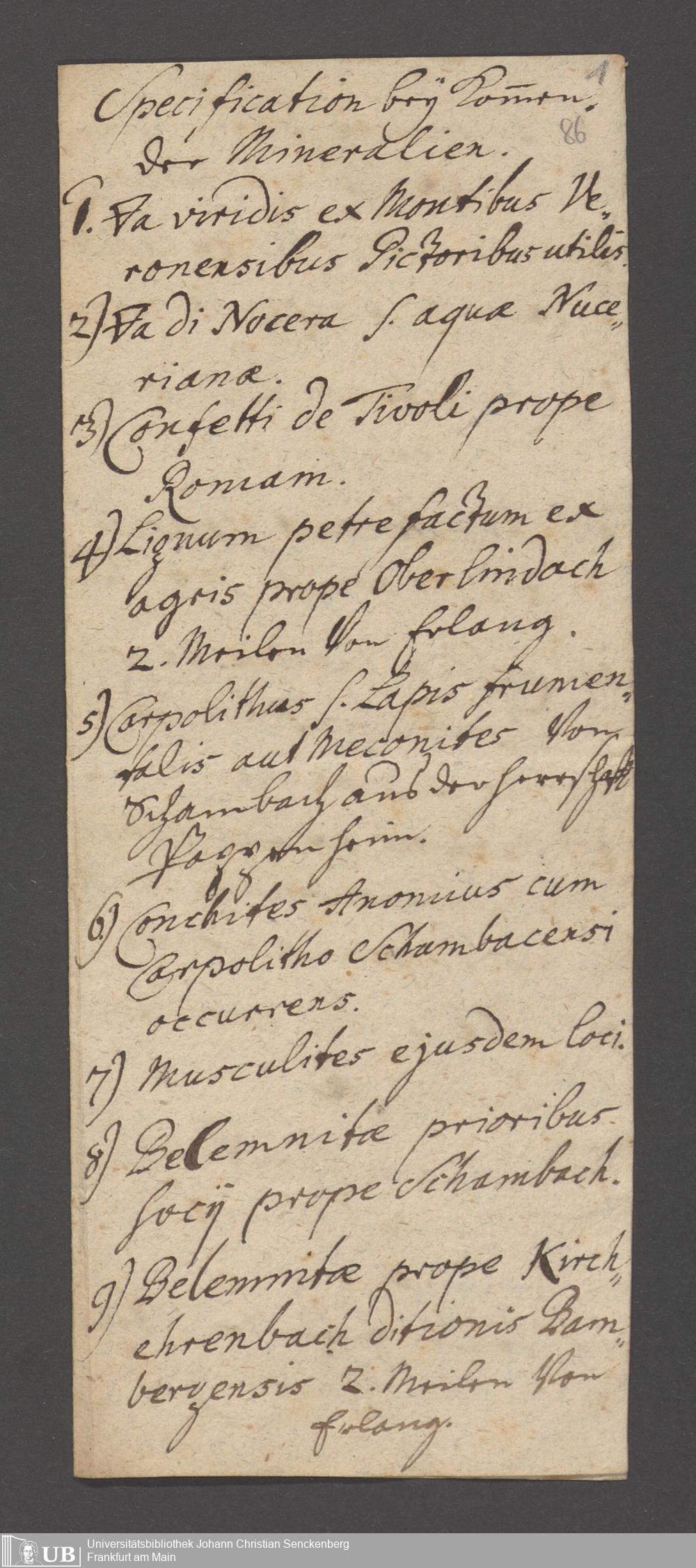 Na 31 Nachlass Johann Christian Senckenberg, 186 - Aufzeichnungen zur Mineralogie