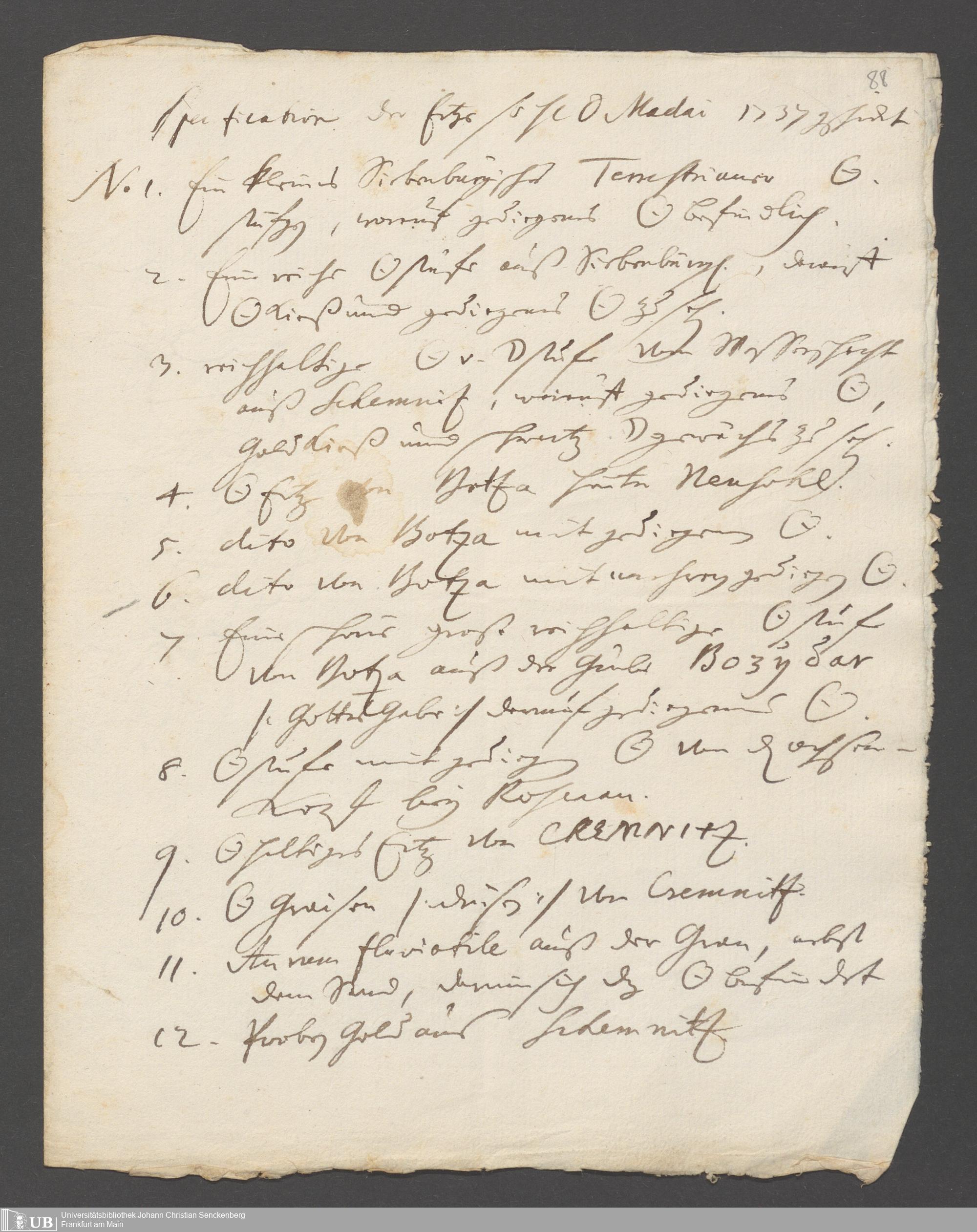 Na 31 Nachlass Johann Christian Senckenberg, 186 - Aufzeichnungen zur Mineralogie