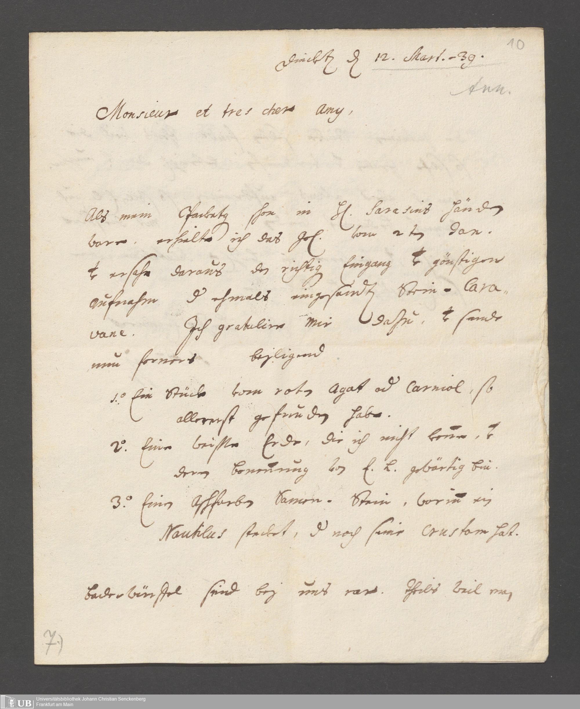 Na 31 Nachlass Johann Christian Senckenberg, 187 - Aufzeichnungen zur Mineralogie