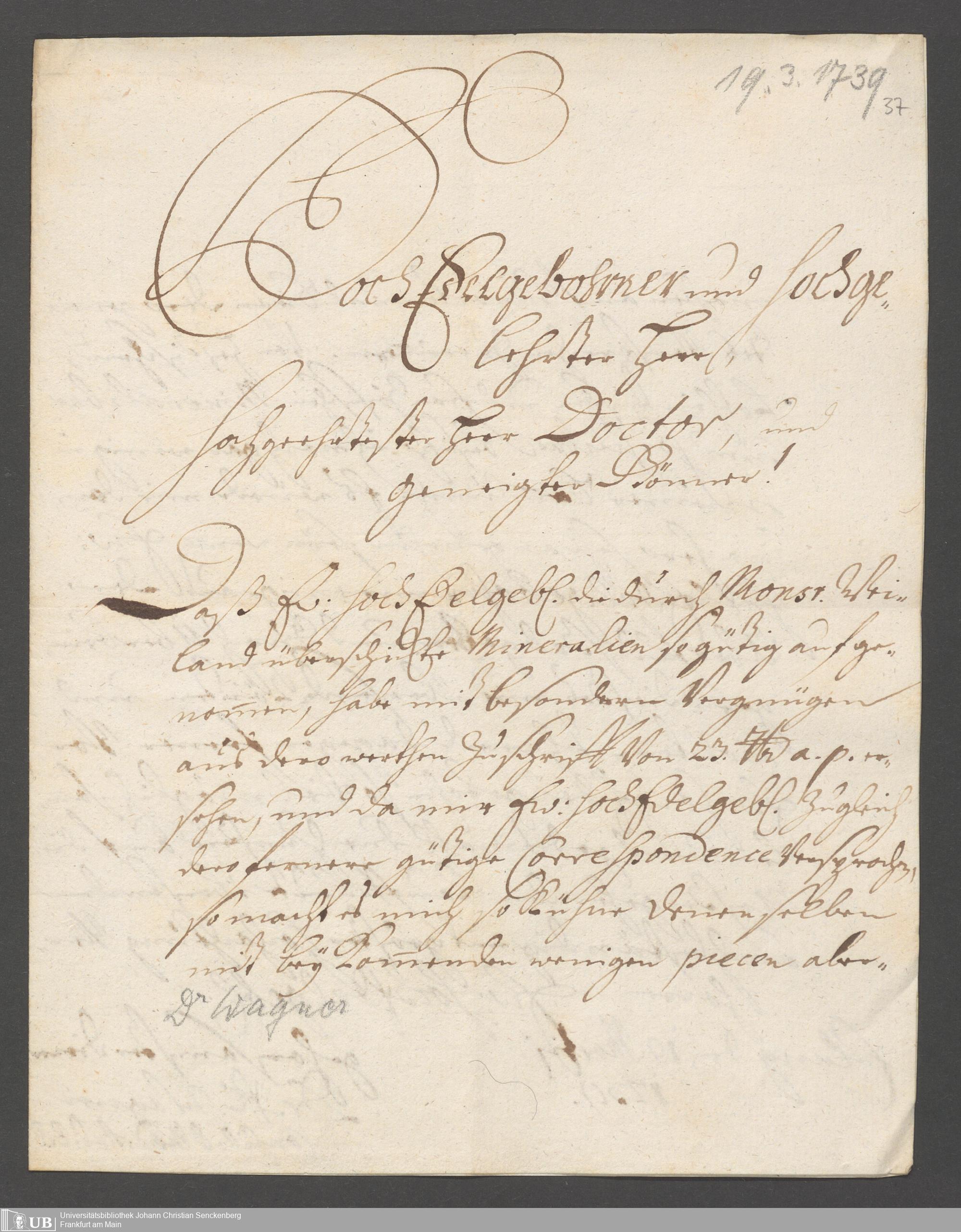 Na 31 Nachlass Johann Christian Senckenberg, 188 - Briefe von Annonius