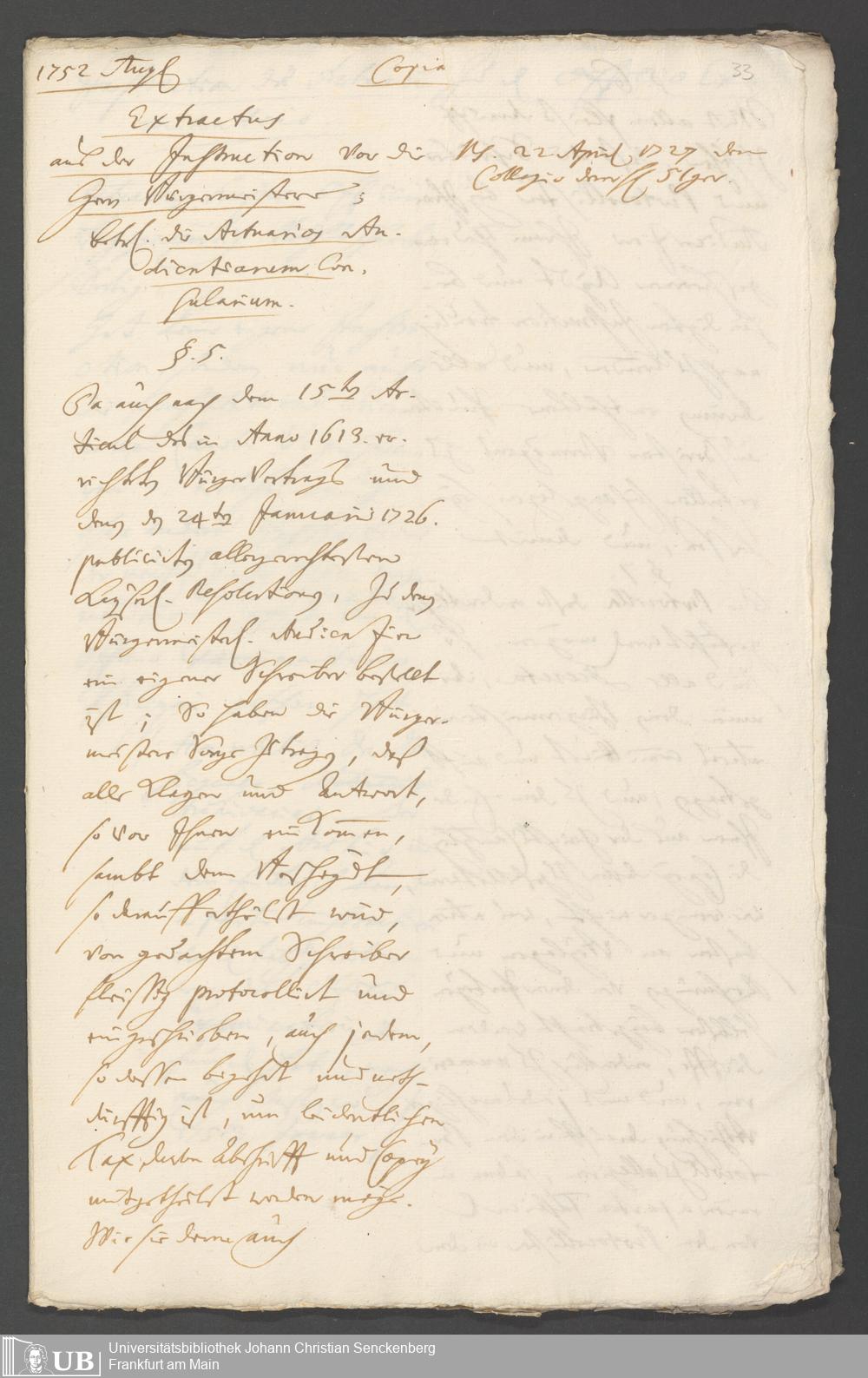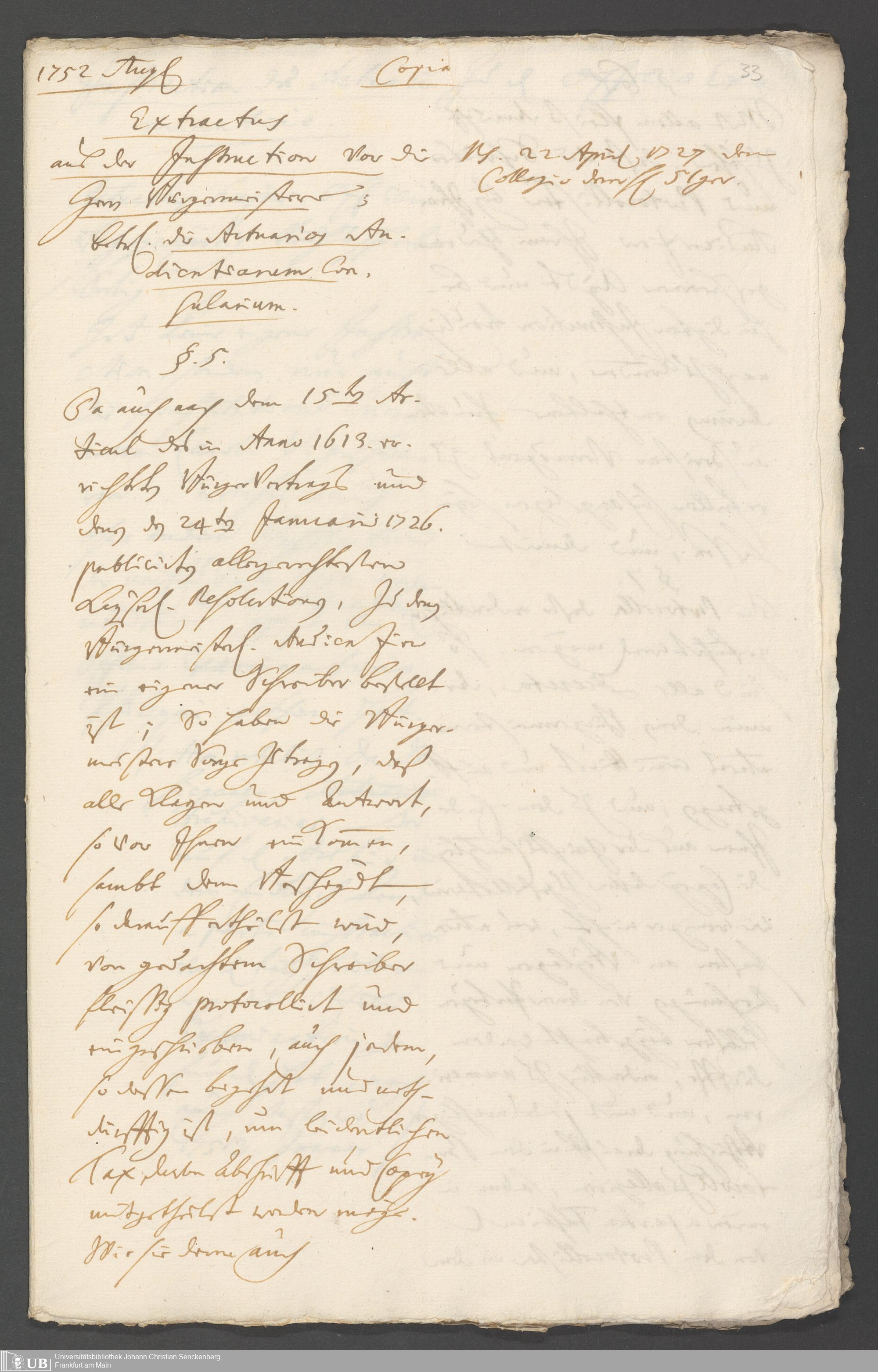 Na 31 Nachlass Johann Christian Senckenberg, 190 - Verschiedene Frankfurtische Instructiones