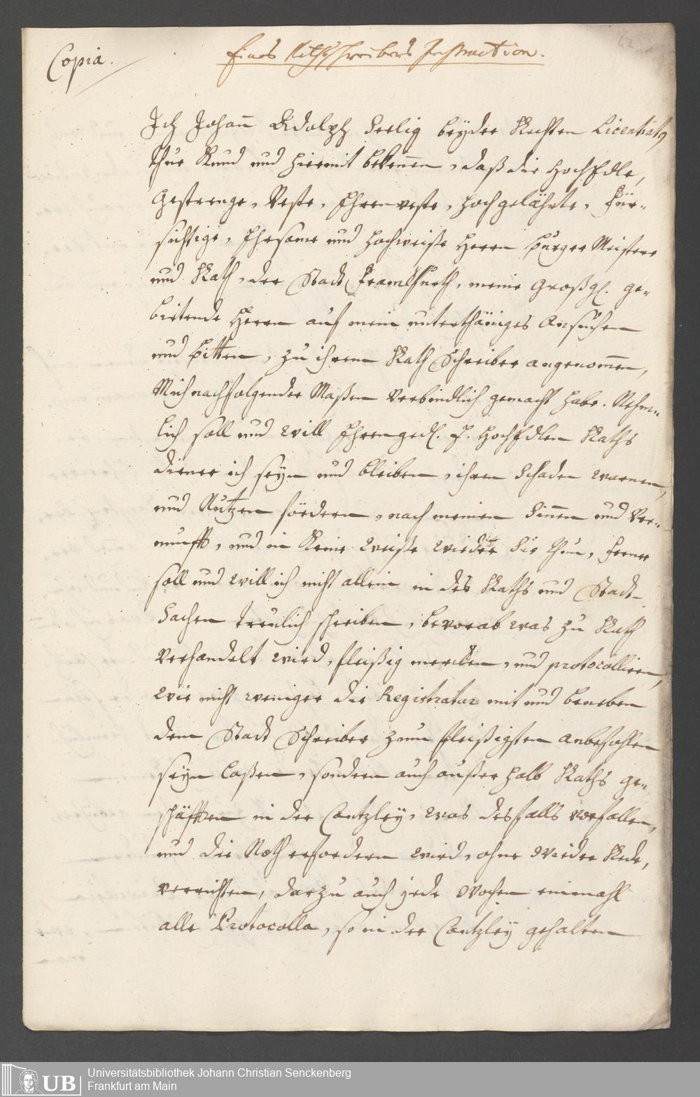 Na 31 Nachlass Johann Christian Senckenberg, 190 - Verschiedene Frankfurtische Instructiones