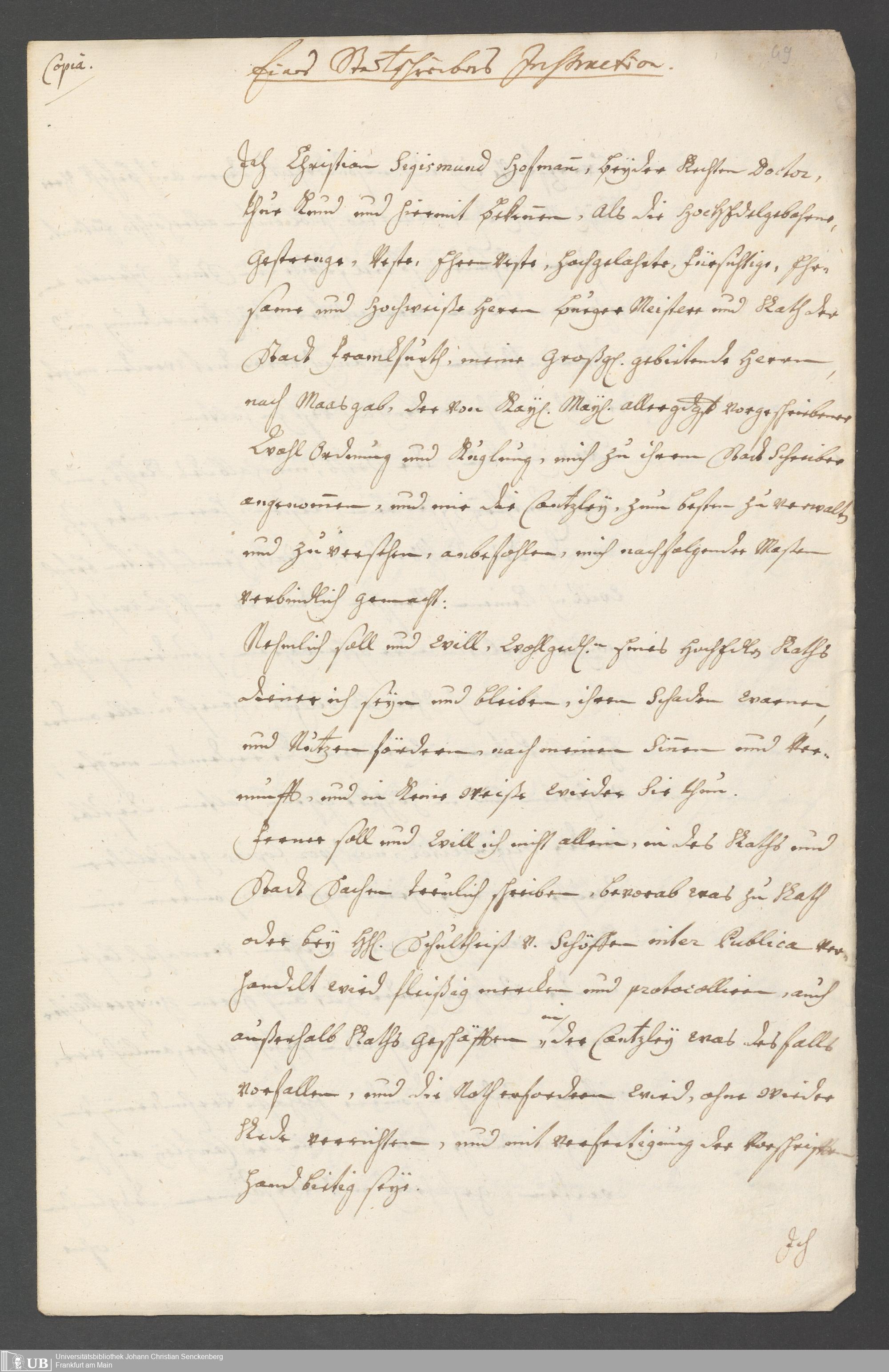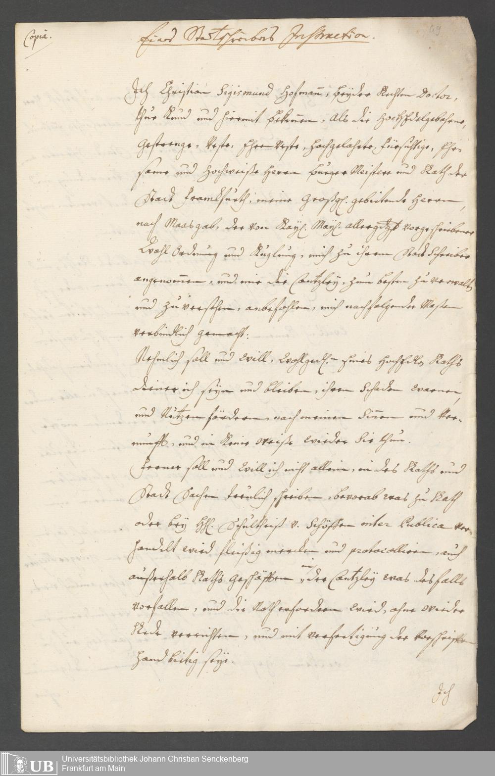 Na 31 Nachlass Johann Christian Senckenberg, 190 - Verschiedene Frankfurtische Instructiones