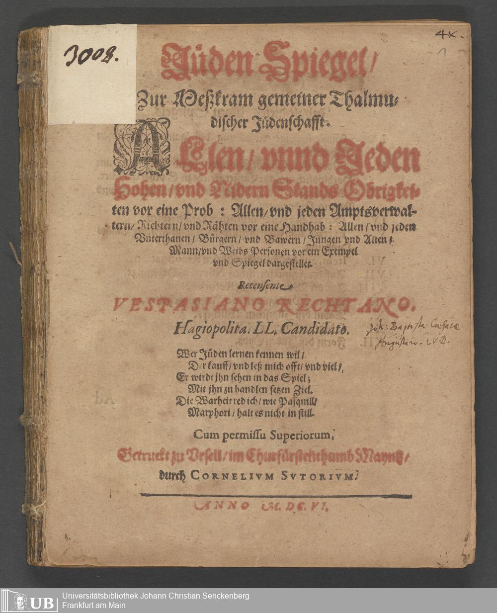 Na 31 Nachlass Johann Christian Senckenberg, 194 - Zur Frankfurthischen Unruhe (1612) II (p. I.2.d.107)