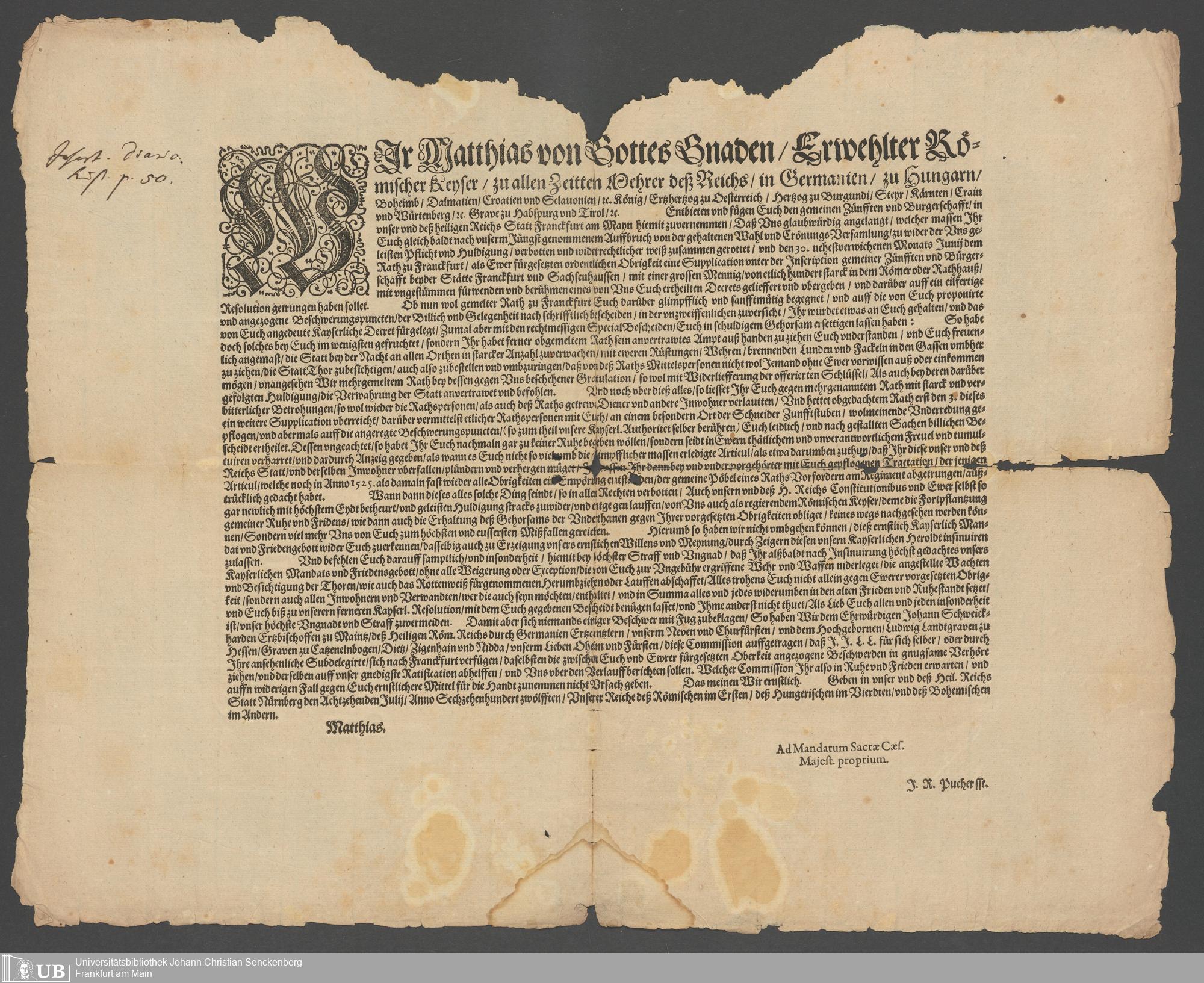 Na 31 Nachlass Johann Christian Senckenberg, 194 - Zur Frankfurthischen Unruhe (1612) II (p. I.2.d.107)