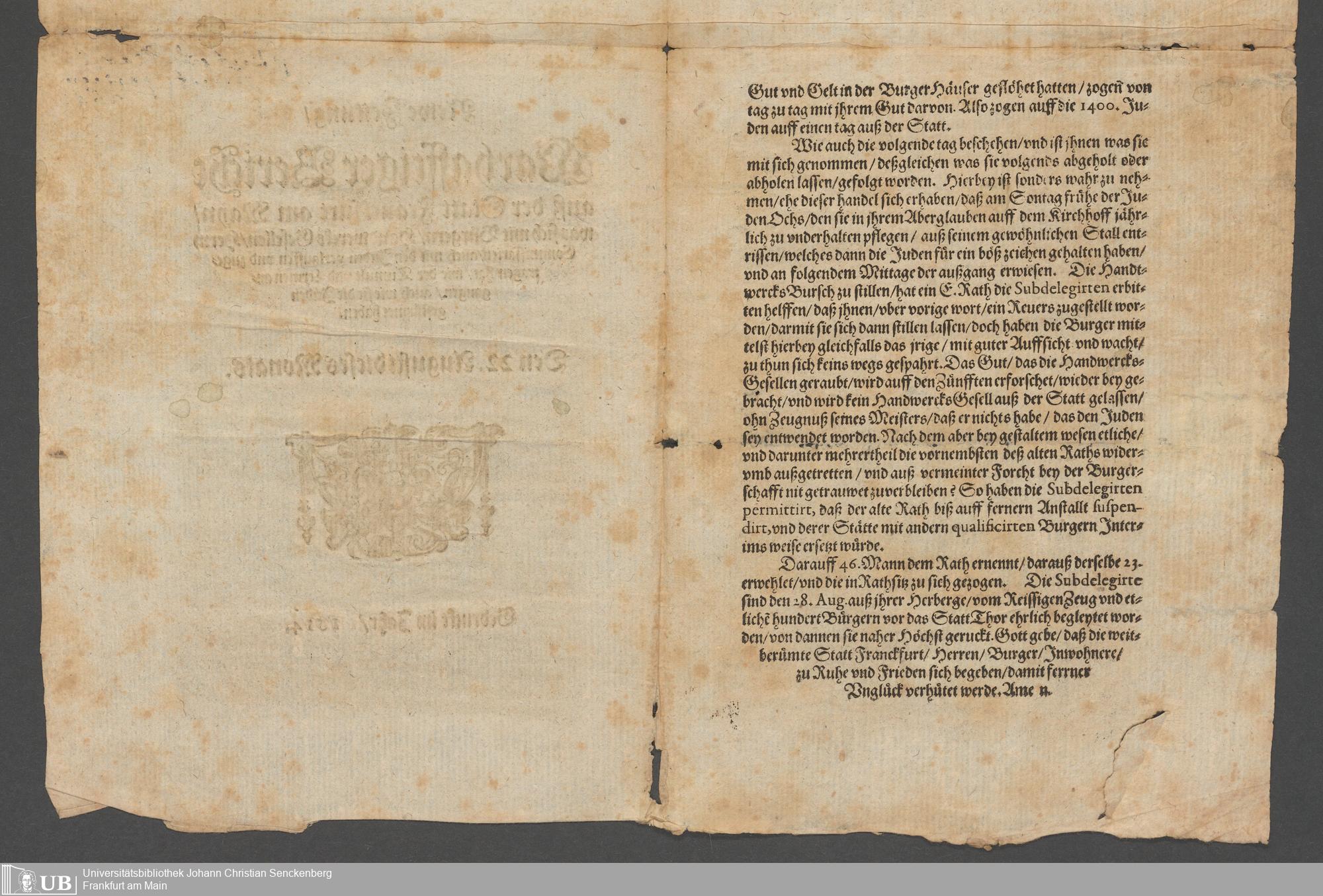 Na 31 Nachlass Johann Christian Senckenberg, 194 - Zur Frankfurthischen Unruhe (1612) II (p. I.2.d.107)