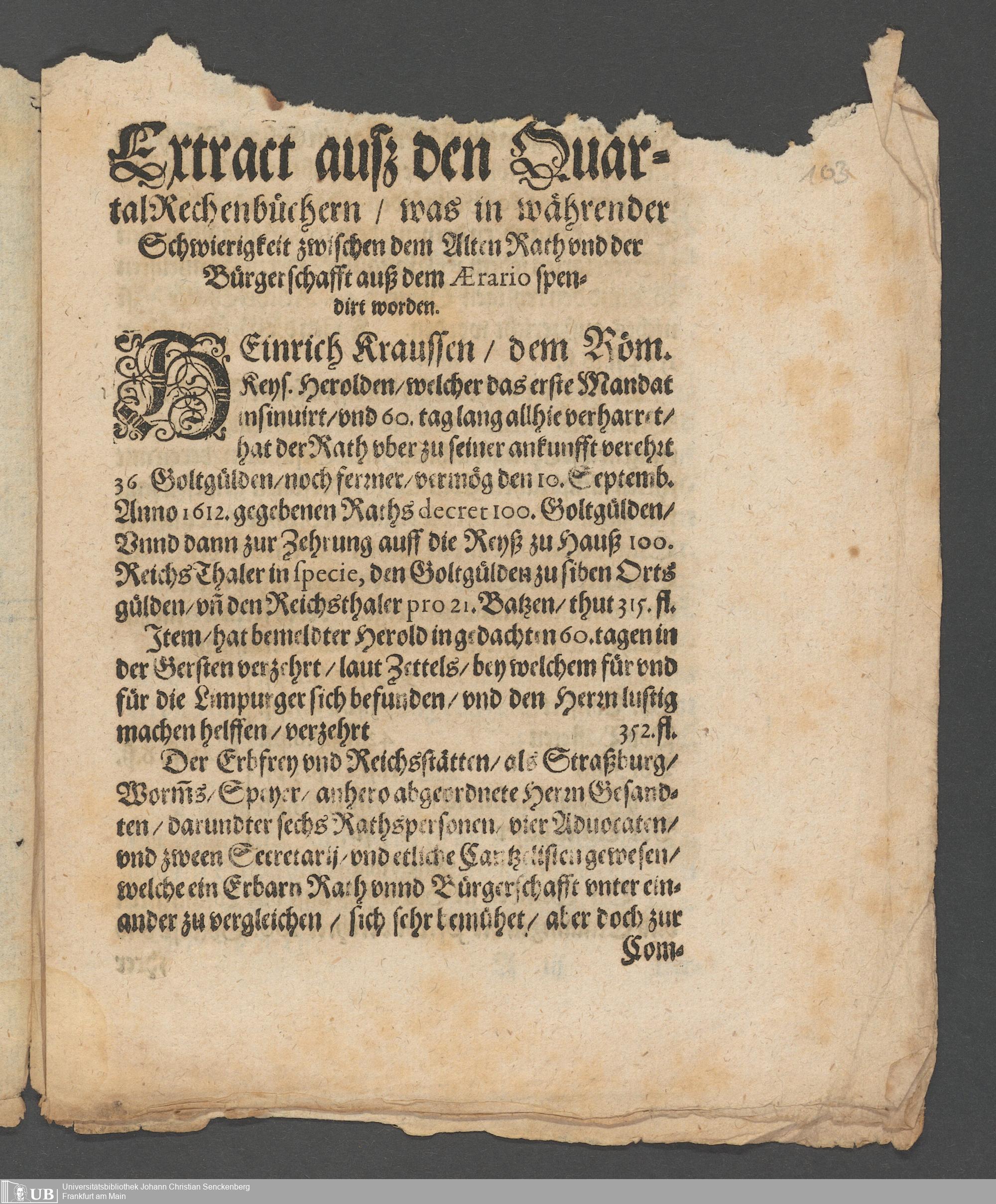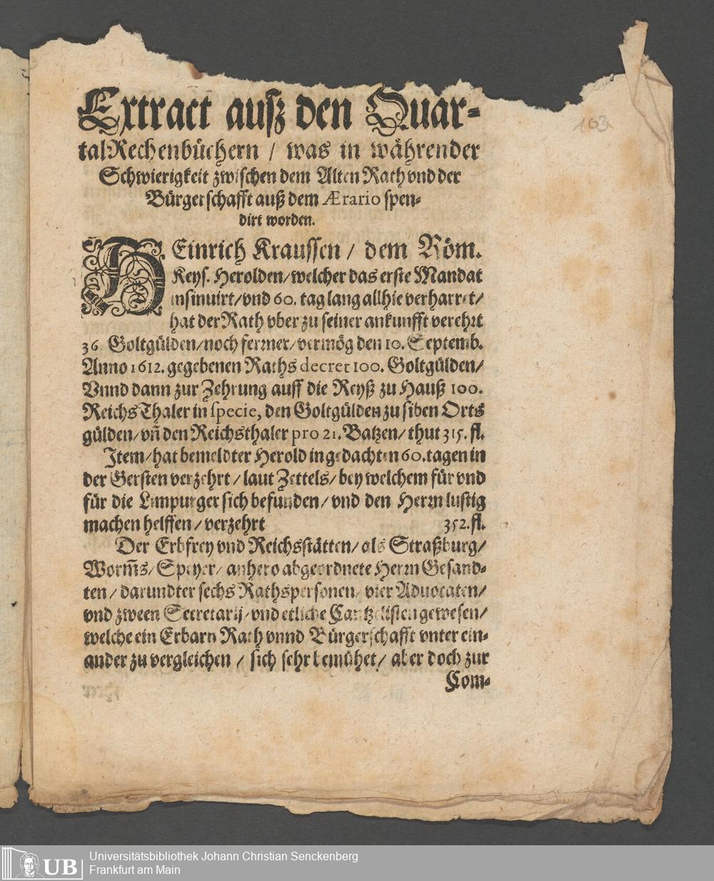 Na 31 Nachlass Johann Christian Senckenberg, 194 - Zur Frankfurthischen Unruhe (1612) II (p. I.2.d.107)