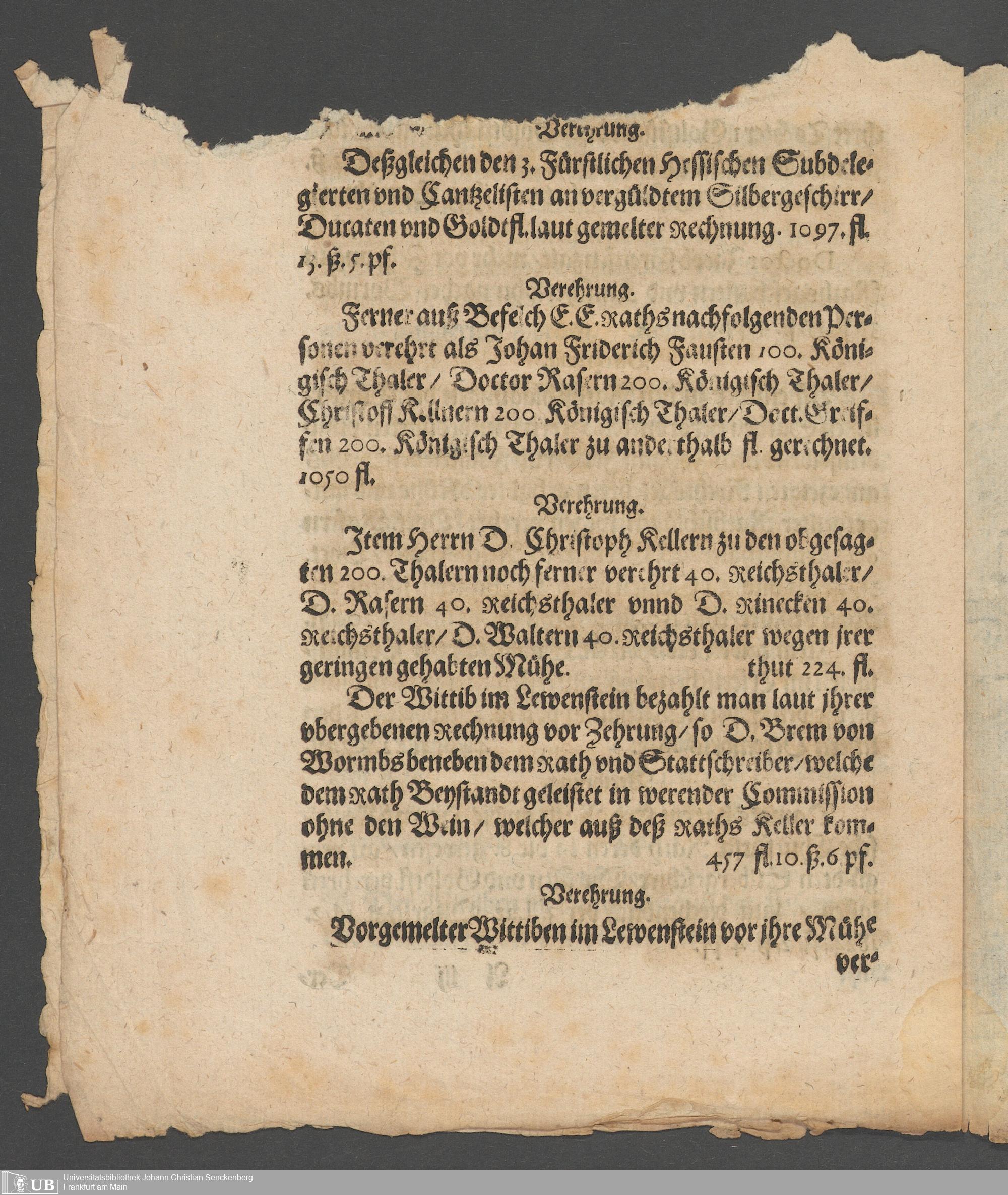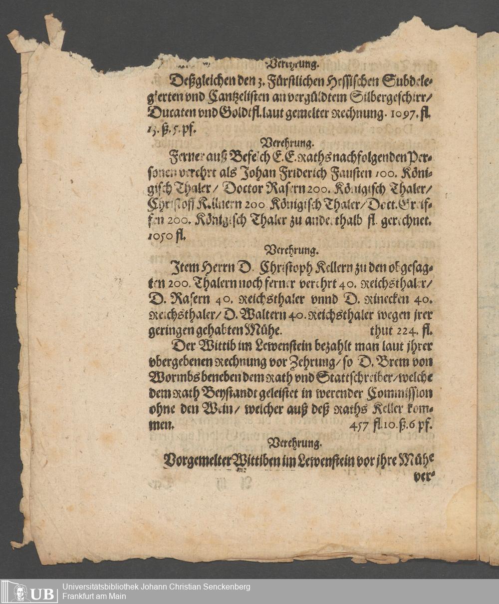 Na 31 Nachlass Johann Christian Senckenberg, 194 - Zur Frankfurthischen Unruhe (1612) II (p. I.2.d.107)