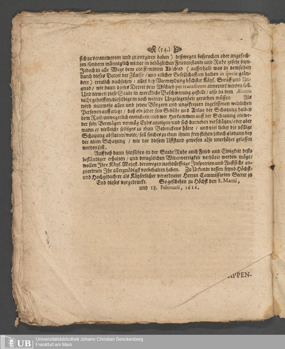 Na 31 Nachlass Johann Christian Senckenberg, 194 - Zur Frankfurthischen Unruhe (1612) II (p. I.2.d.107)