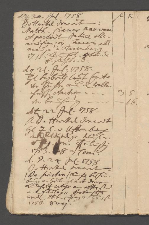 Na 31 Nachlass Johann Christian Senckenberg, 215 - Aufzeichnungen über Bücherkäufe und Schenkungen