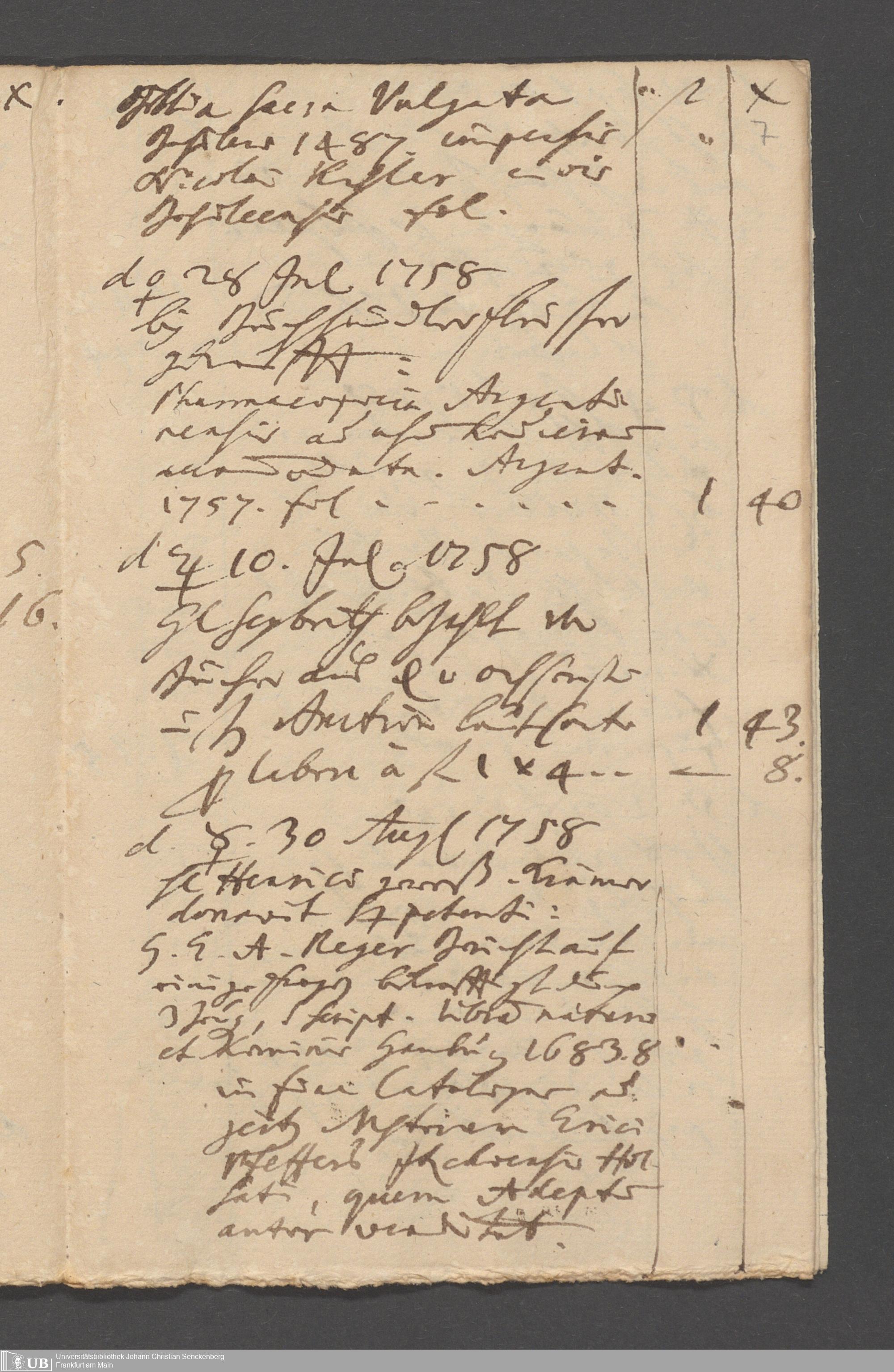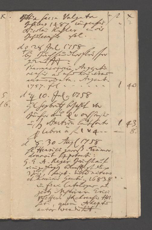 Na 31 Nachlass Johann Christian Senckenberg, 215 - Aufzeichnungen über Bücherkäufe und Schenkungen