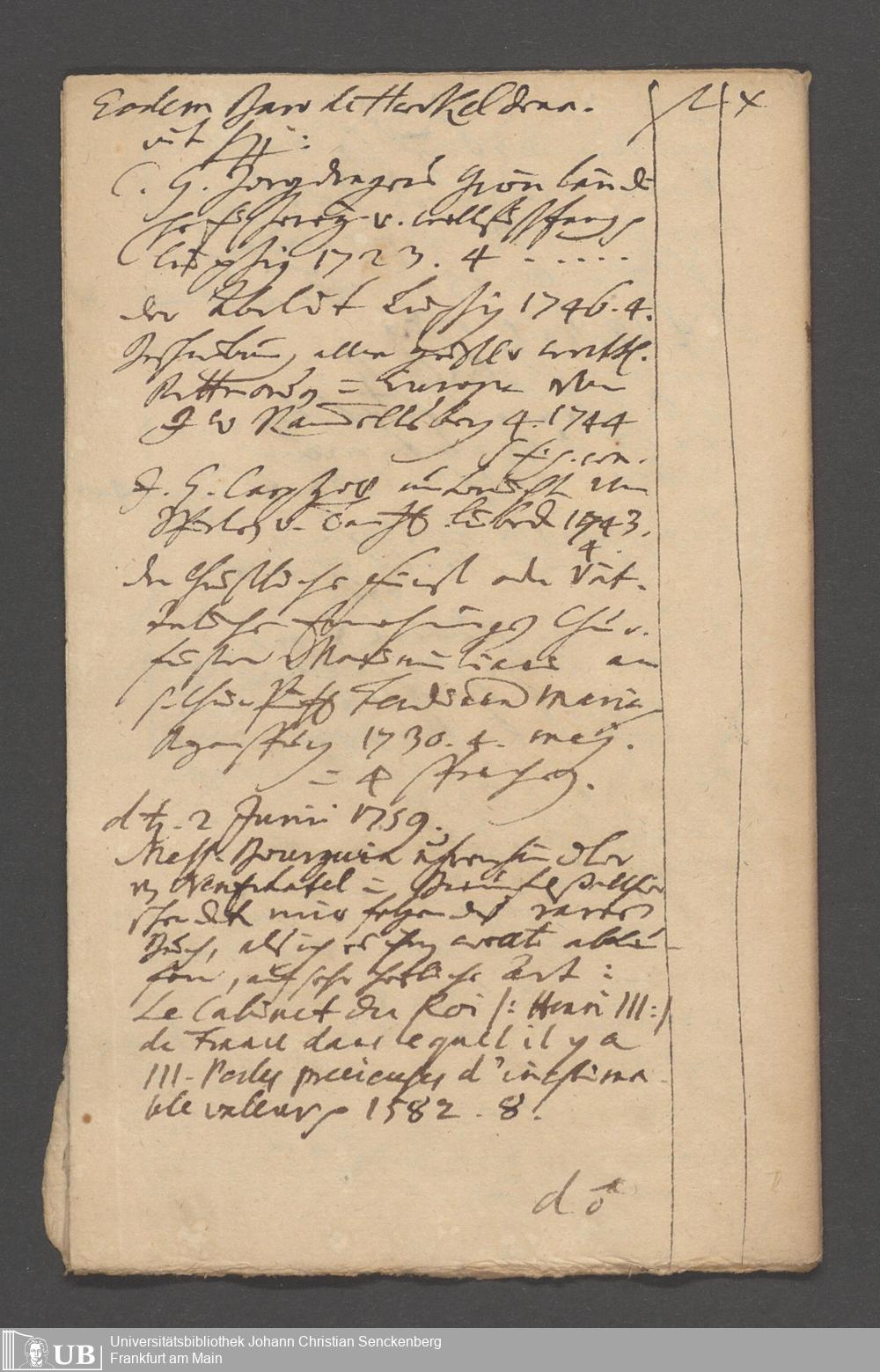Na 31 Nachlass Johann Christian Senckenberg, 215 - Aufzeichnungen über Bücherkäufe und Schenkungen