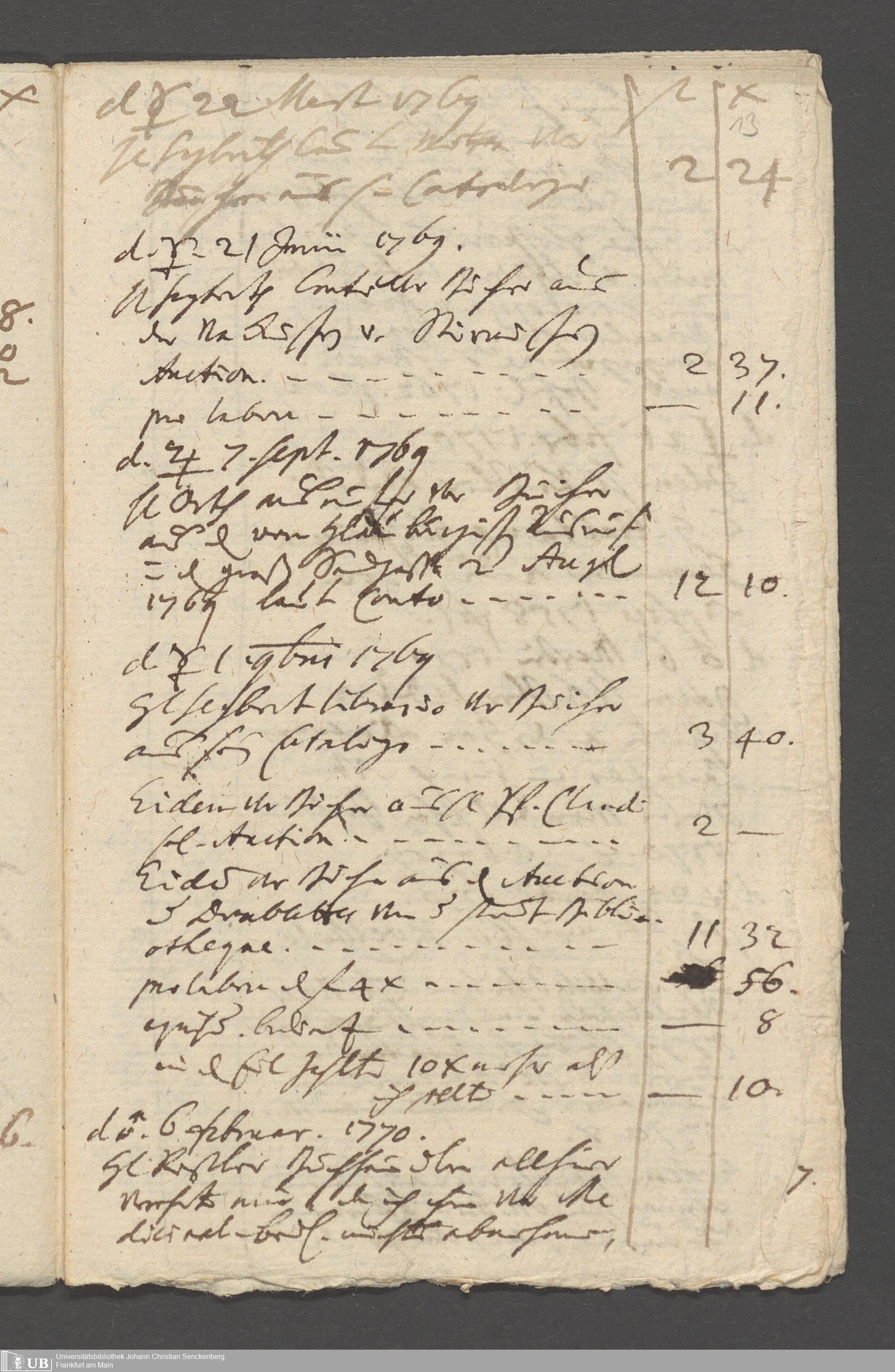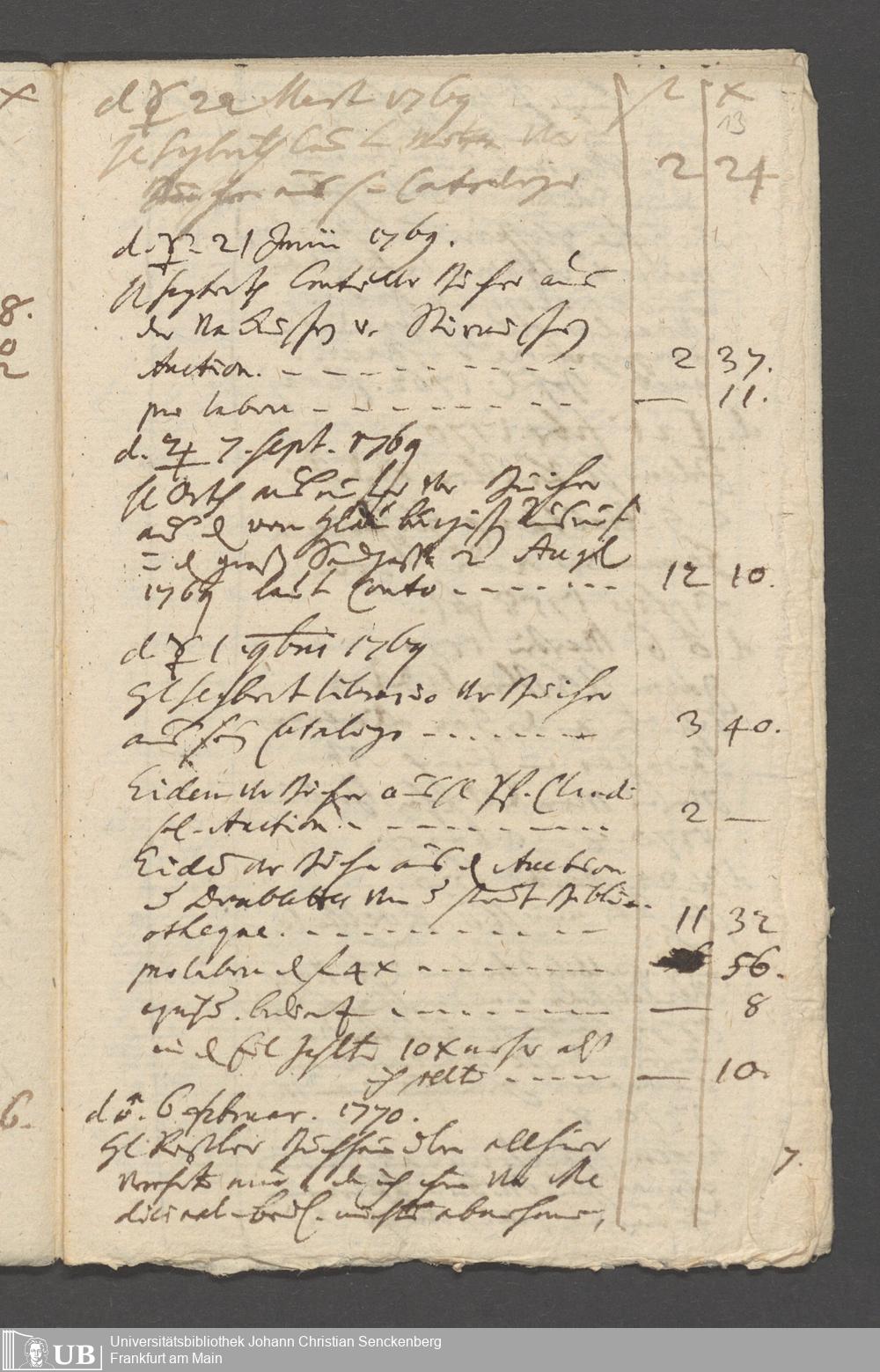 Na 31 Nachlass Johann Christian Senckenberg, 215 - Aufzeichnungen über Bücherkäufe und Schenkungen