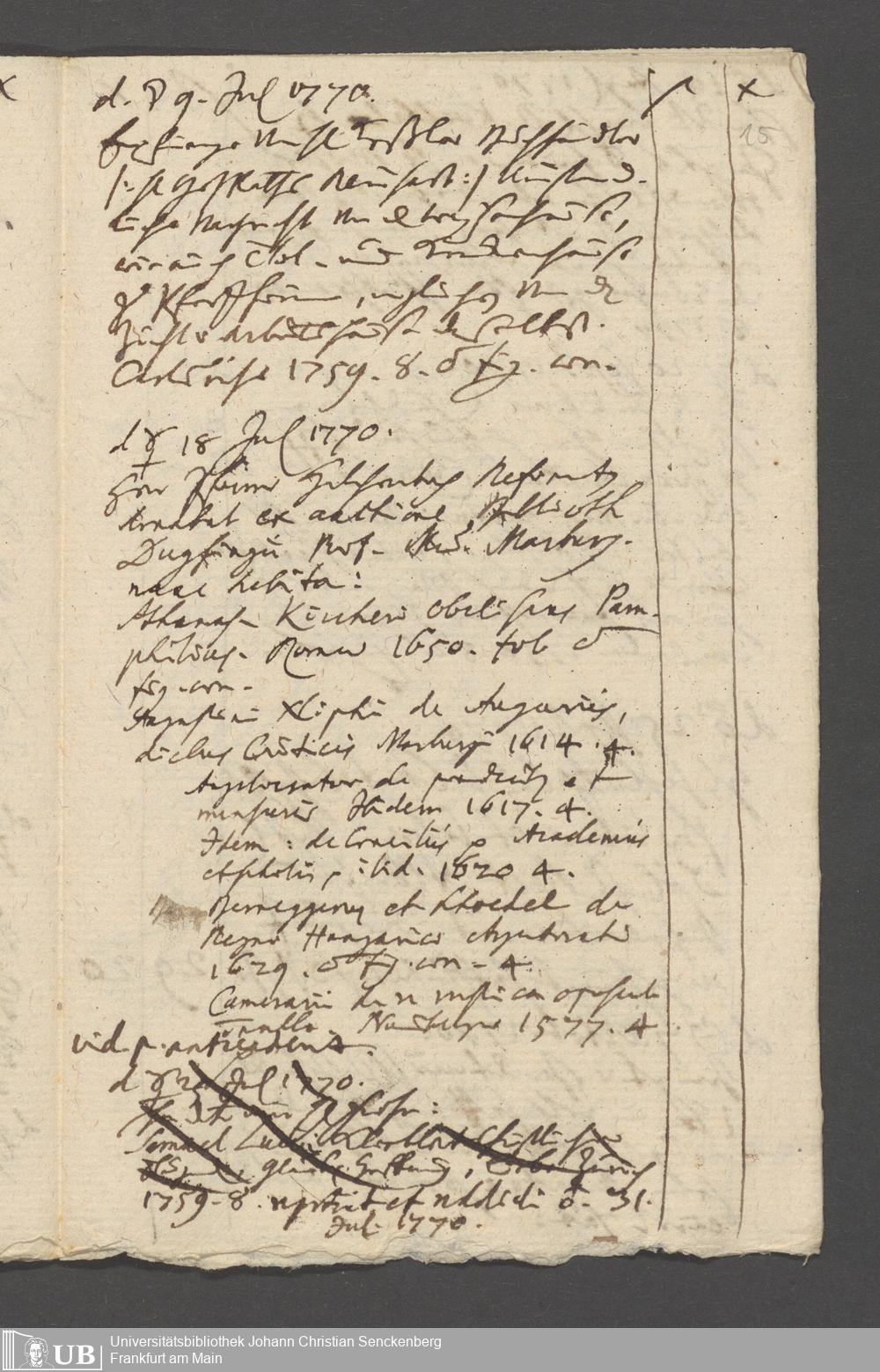 Na 31 Nachlass Johann Christian Senckenberg, 215 - Aufzeichnungen über Bücherkäufe und Schenkungen