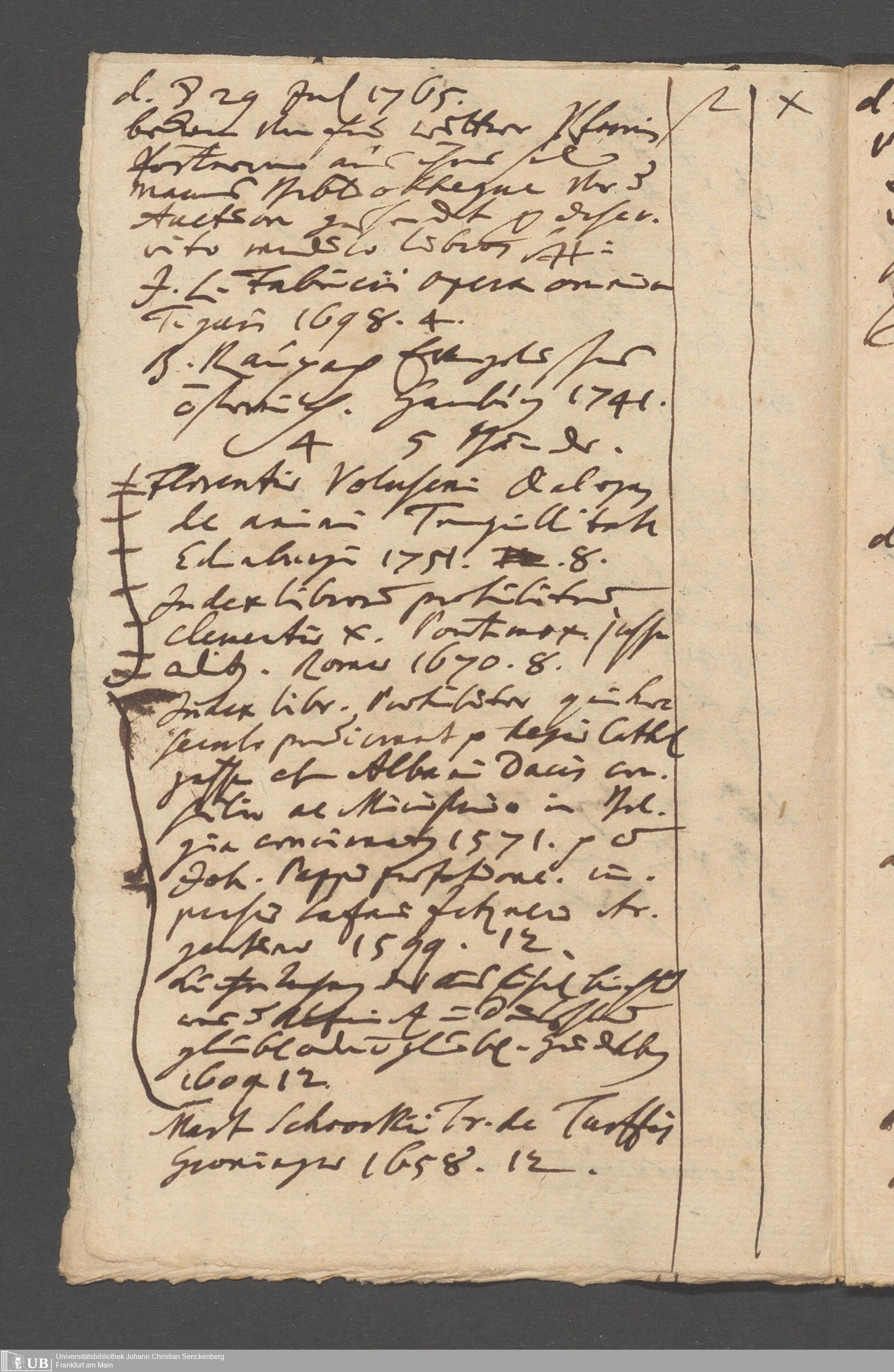 Na 31 Nachlass Johann Christian Senckenberg, 215 - Aufzeichnungen über Bücherkäufe und Schenkungen