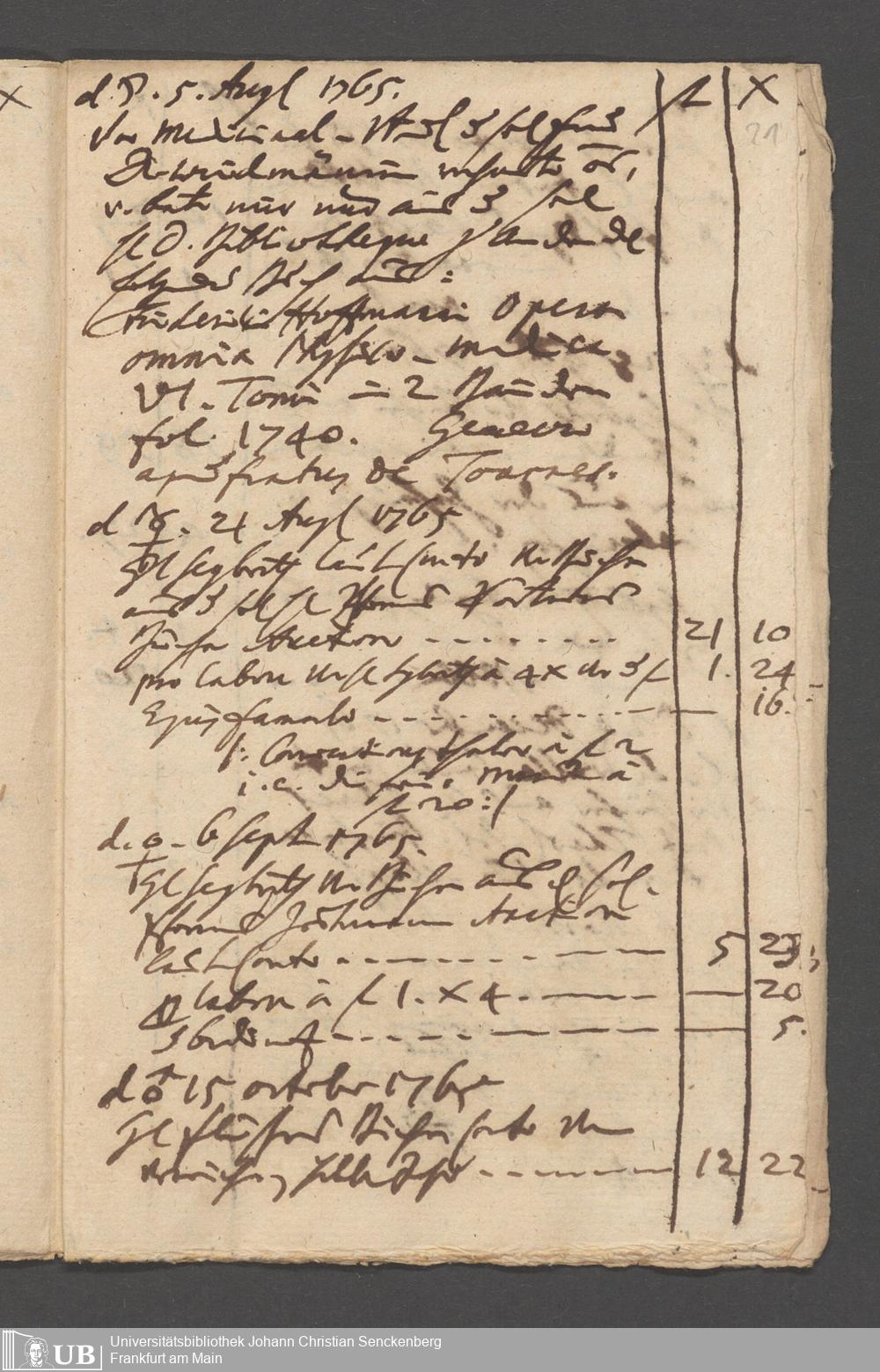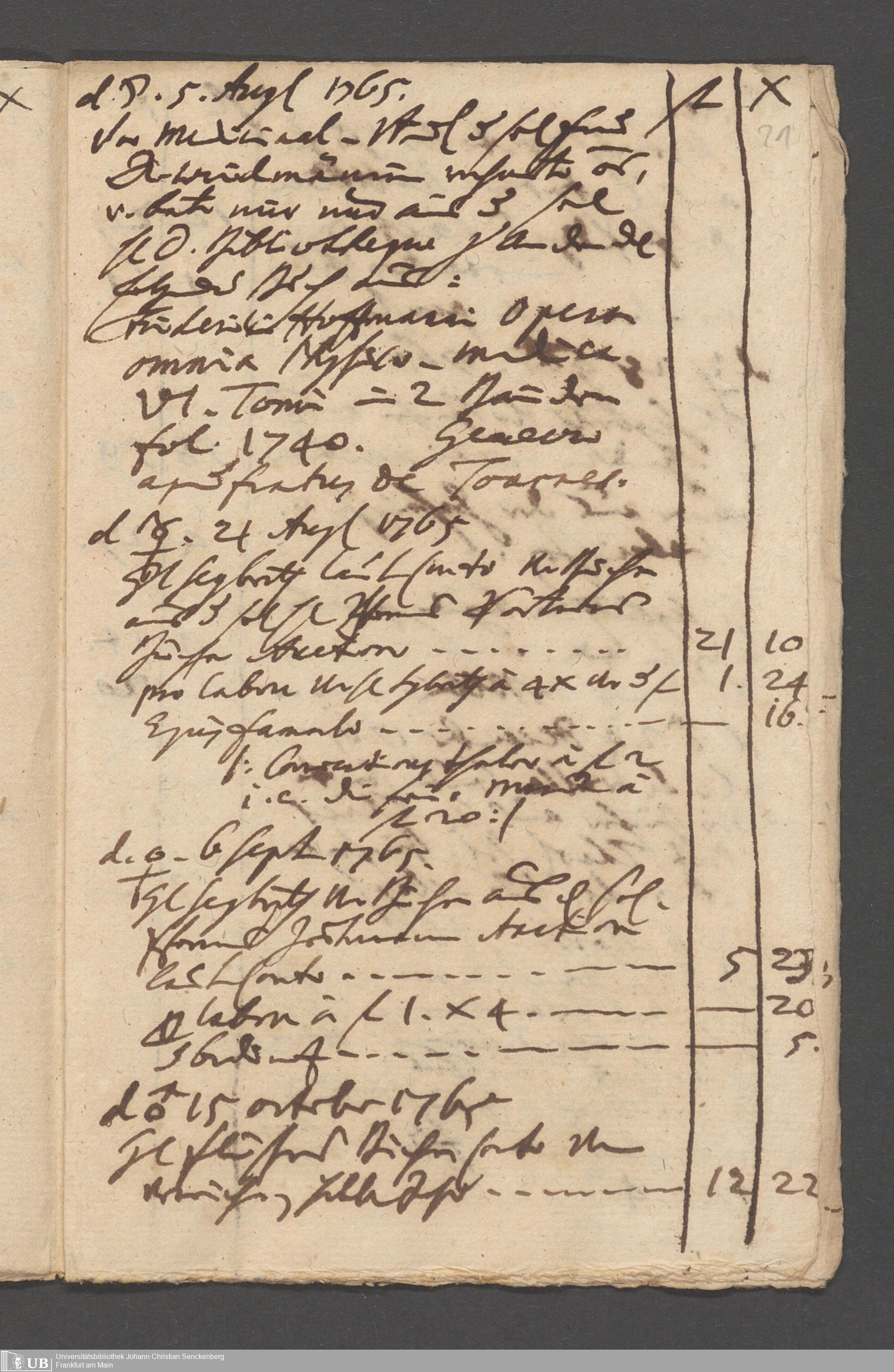 Na 31 Nachlass Johann Christian Senckenberg, 215 - Aufzeichnungen über Bücherkäufe und Schenkungen