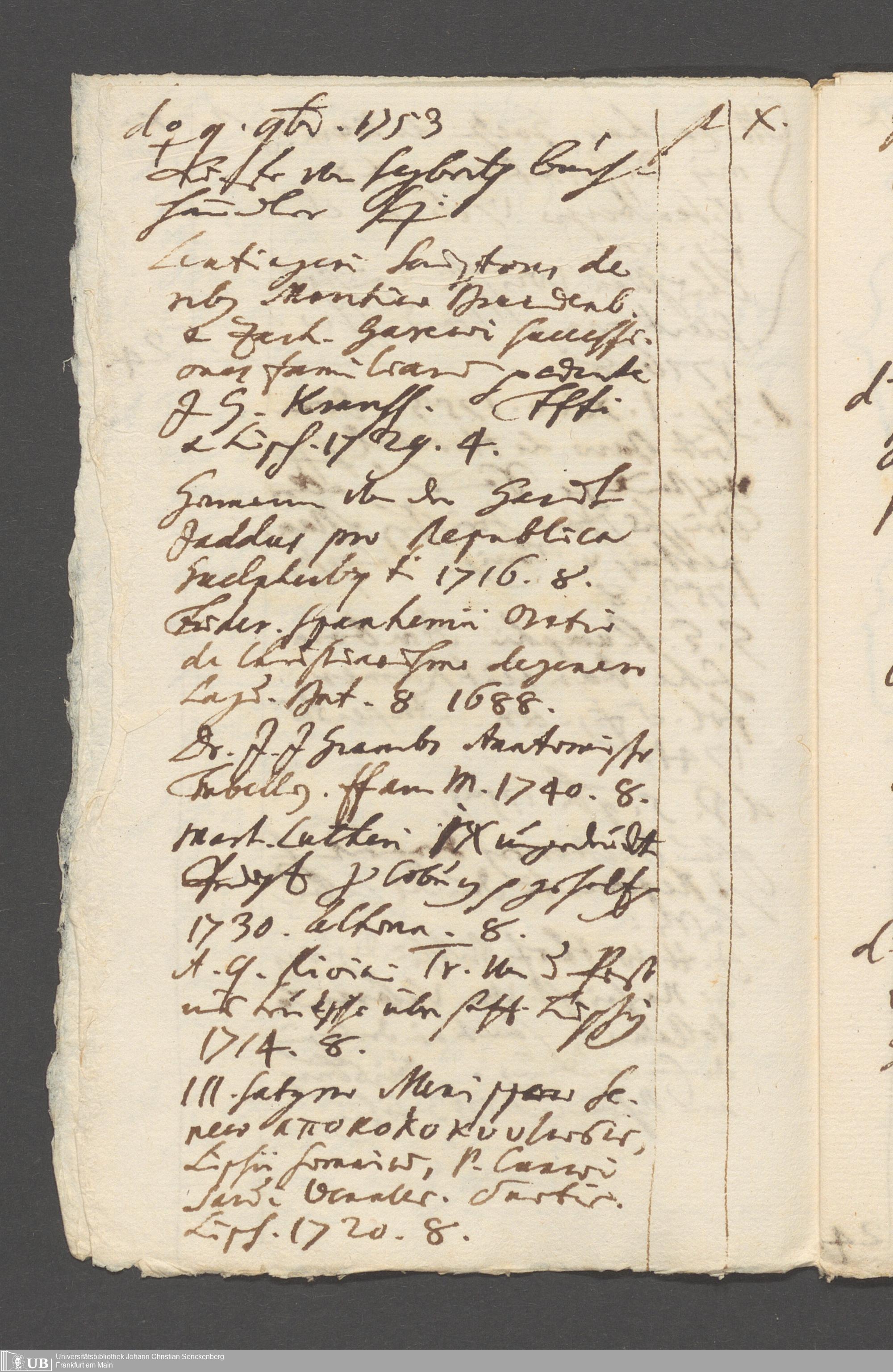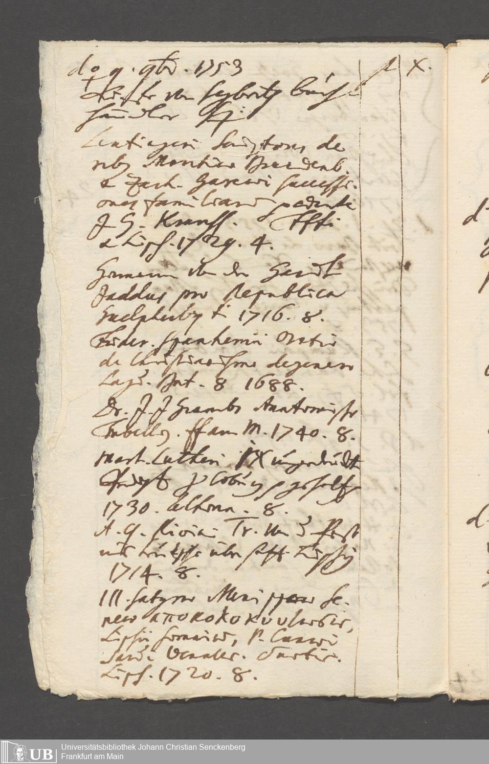 Na 31 Nachlass Johann Christian Senckenberg, 215 - Aufzeichnungen über Bücherkäufe und Schenkungen