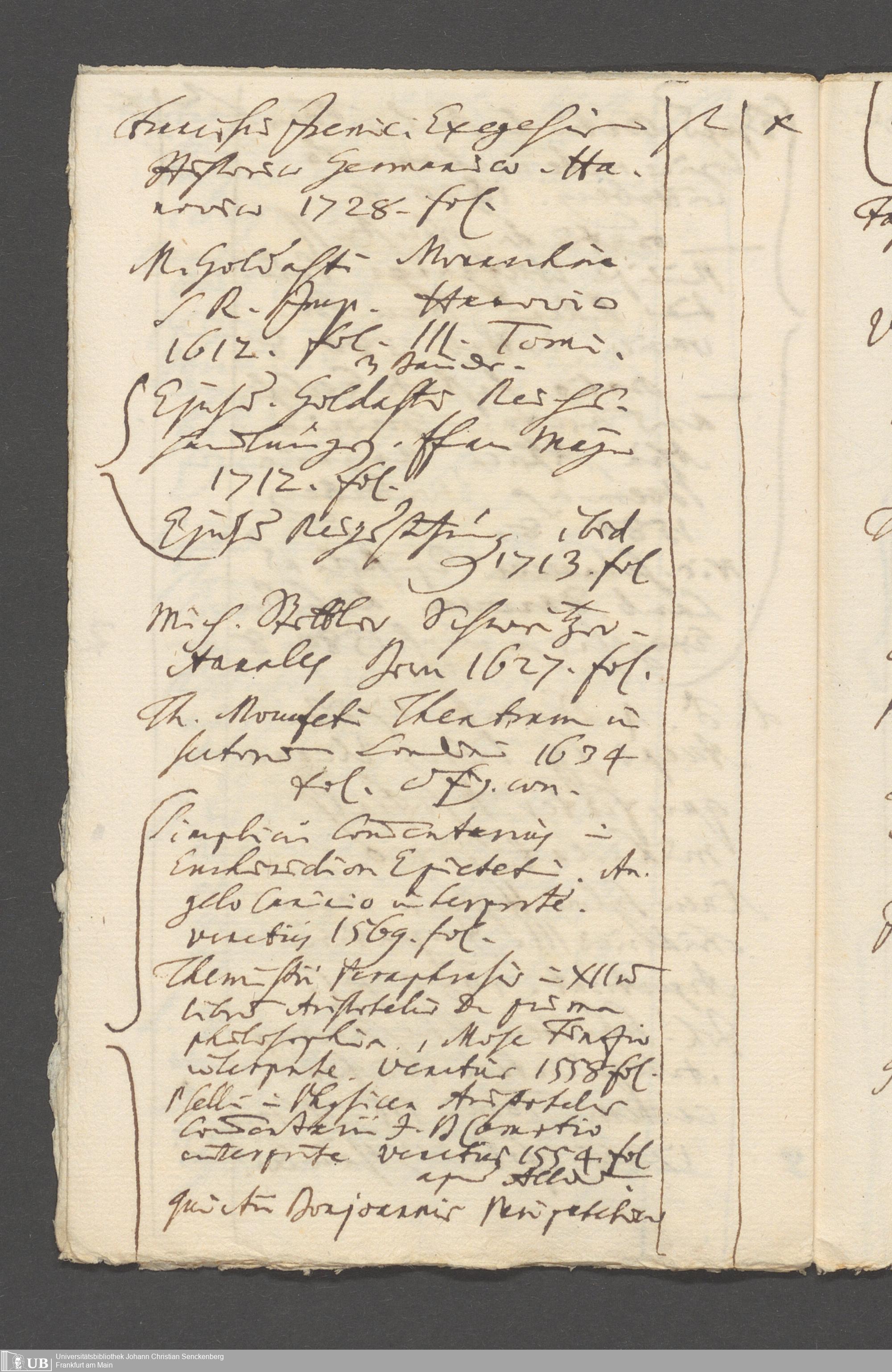 Na 31 Nachlass Johann Christian Senckenberg, 215 - Aufzeichnungen über Bücherkäufe und Schenkungen