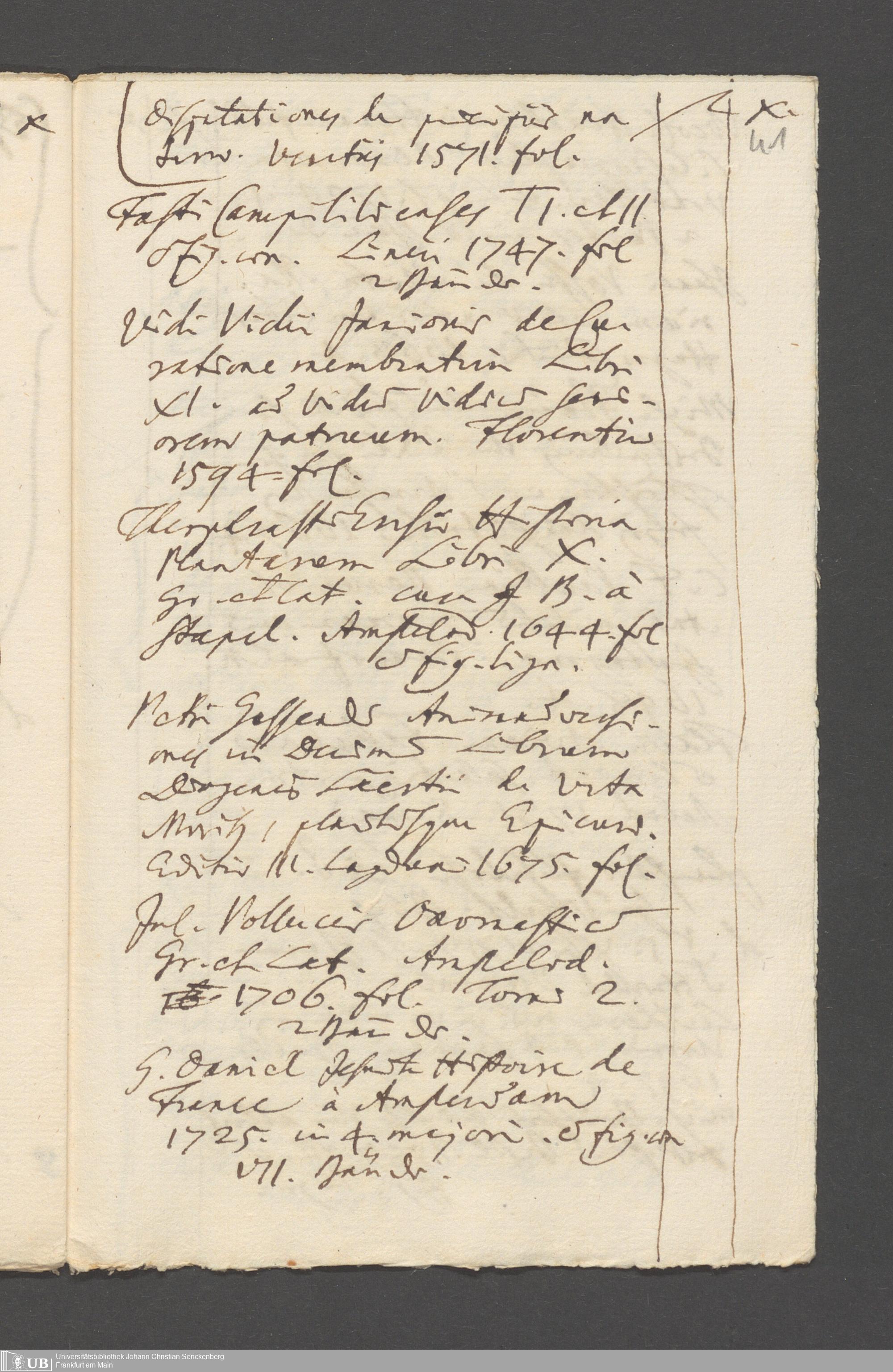 Na 31 Nachlass Johann Christian Senckenberg, 215 - Aufzeichnungen über Bücherkäufe und Schenkungen