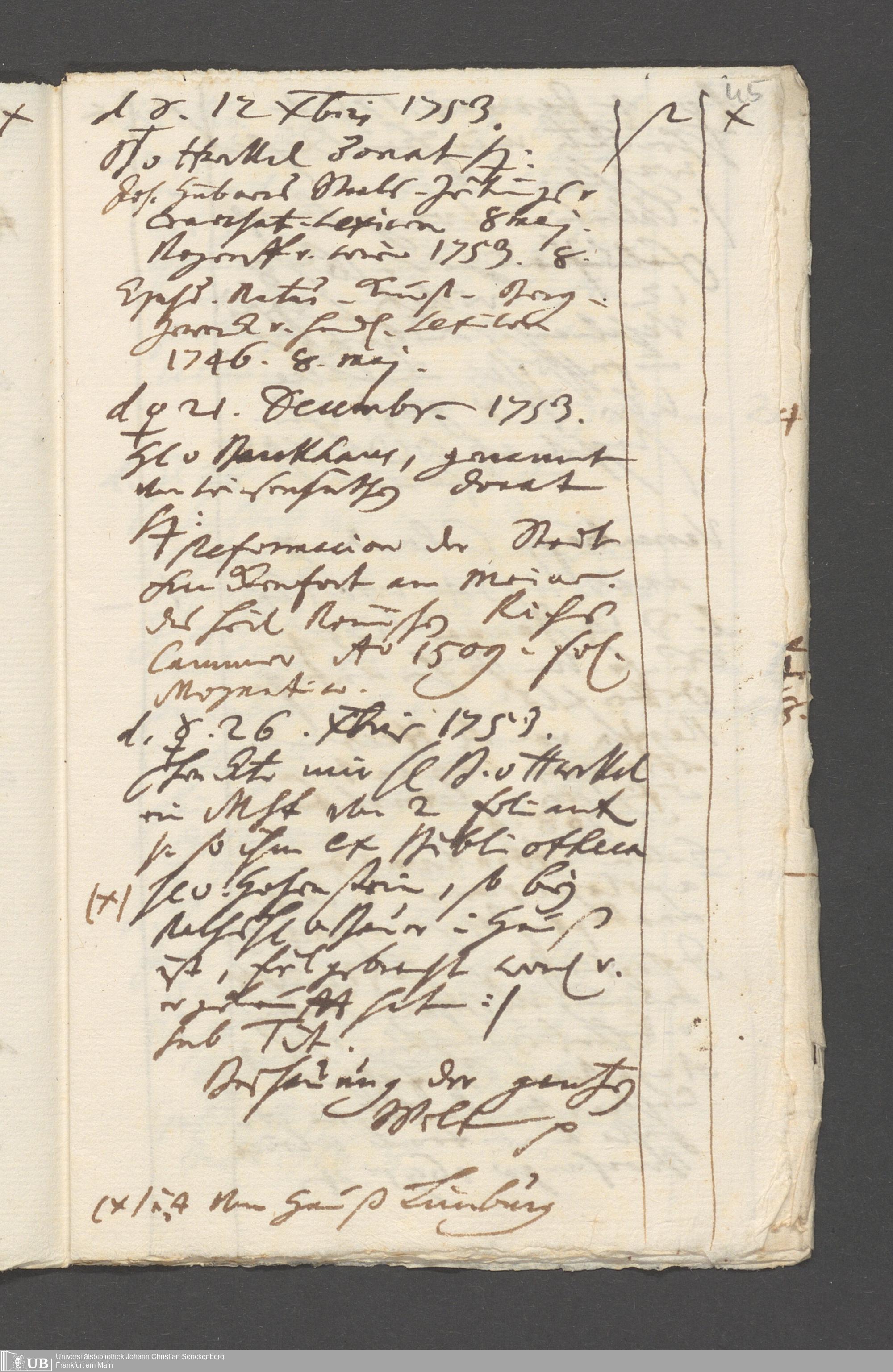Na 31 Nachlass Johann Christian Senckenberg, 215 - Aufzeichnungen über Bücherkäufe und Schenkungen
