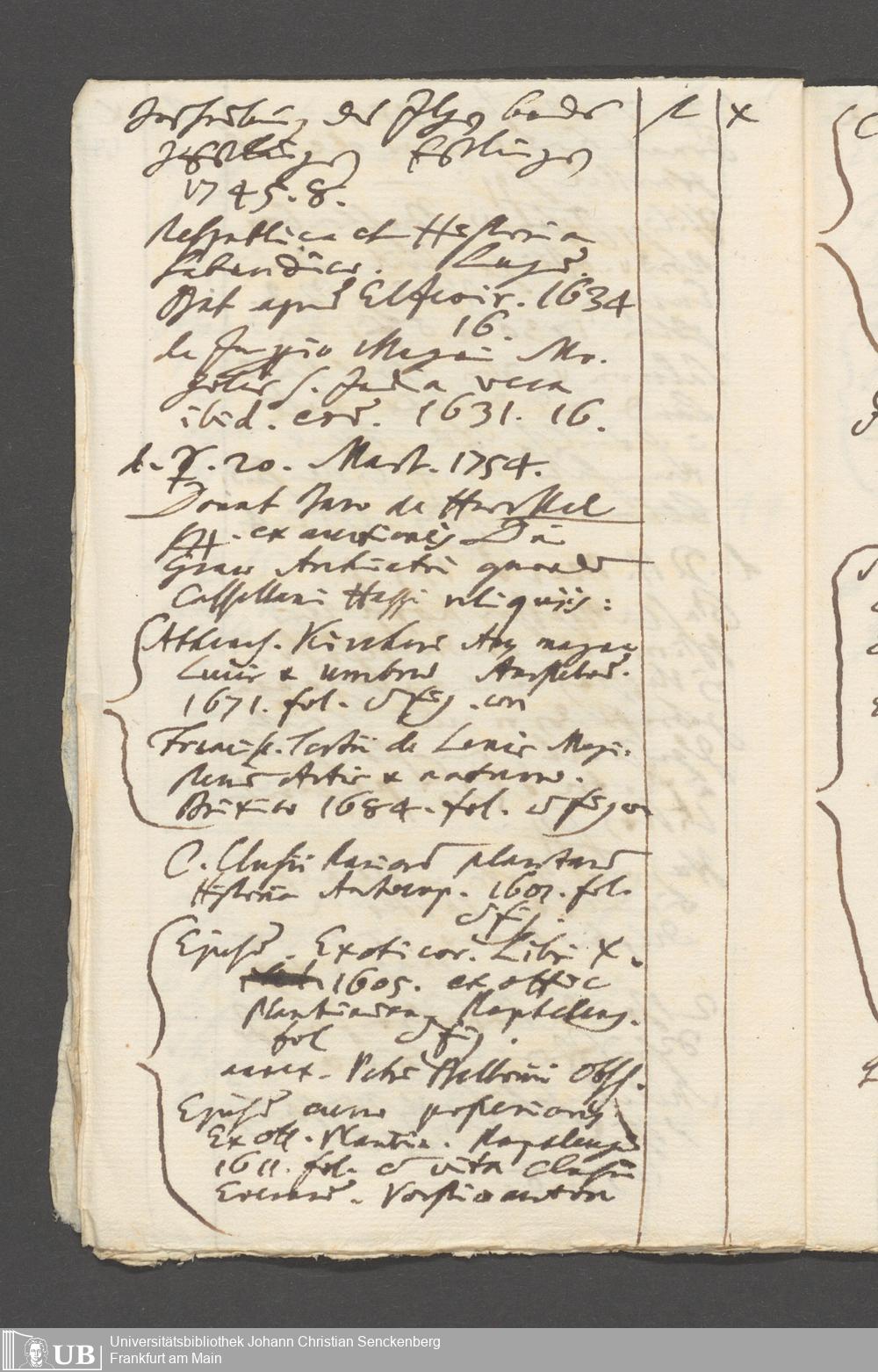 Na 31 Nachlass Johann Christian Senckenberg, 215 - Aufzeichnungen über Bücherkäufe und Schenkungen
