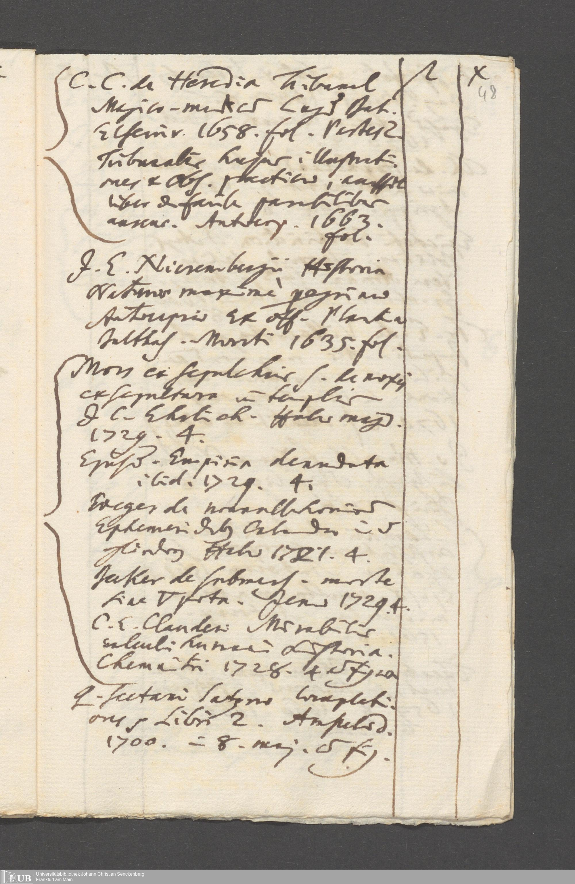 Na 31 Nachlass Johann Christian Senckenberg, 215 - Aufzeichnungen über Bücherkäufe und Schenkungen