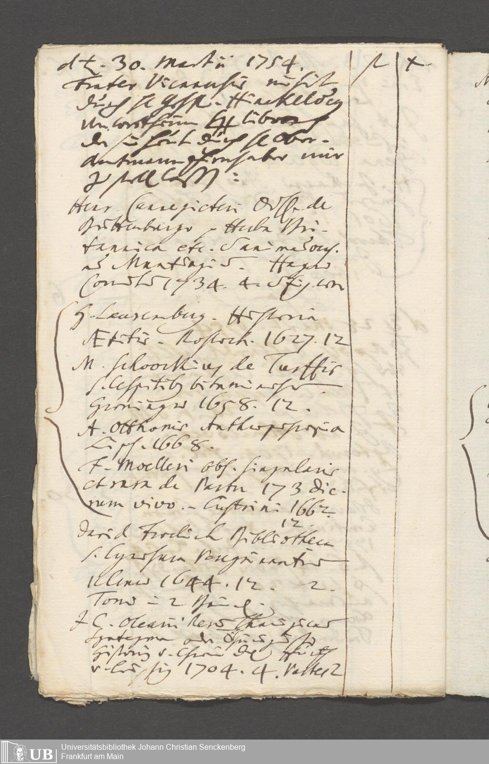 Na 31 Nachlass Johann Christian Senckenberg, 215 - Aufzeichnungen über Bücherkäufe und Schenkungen