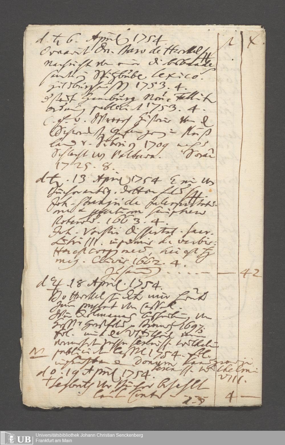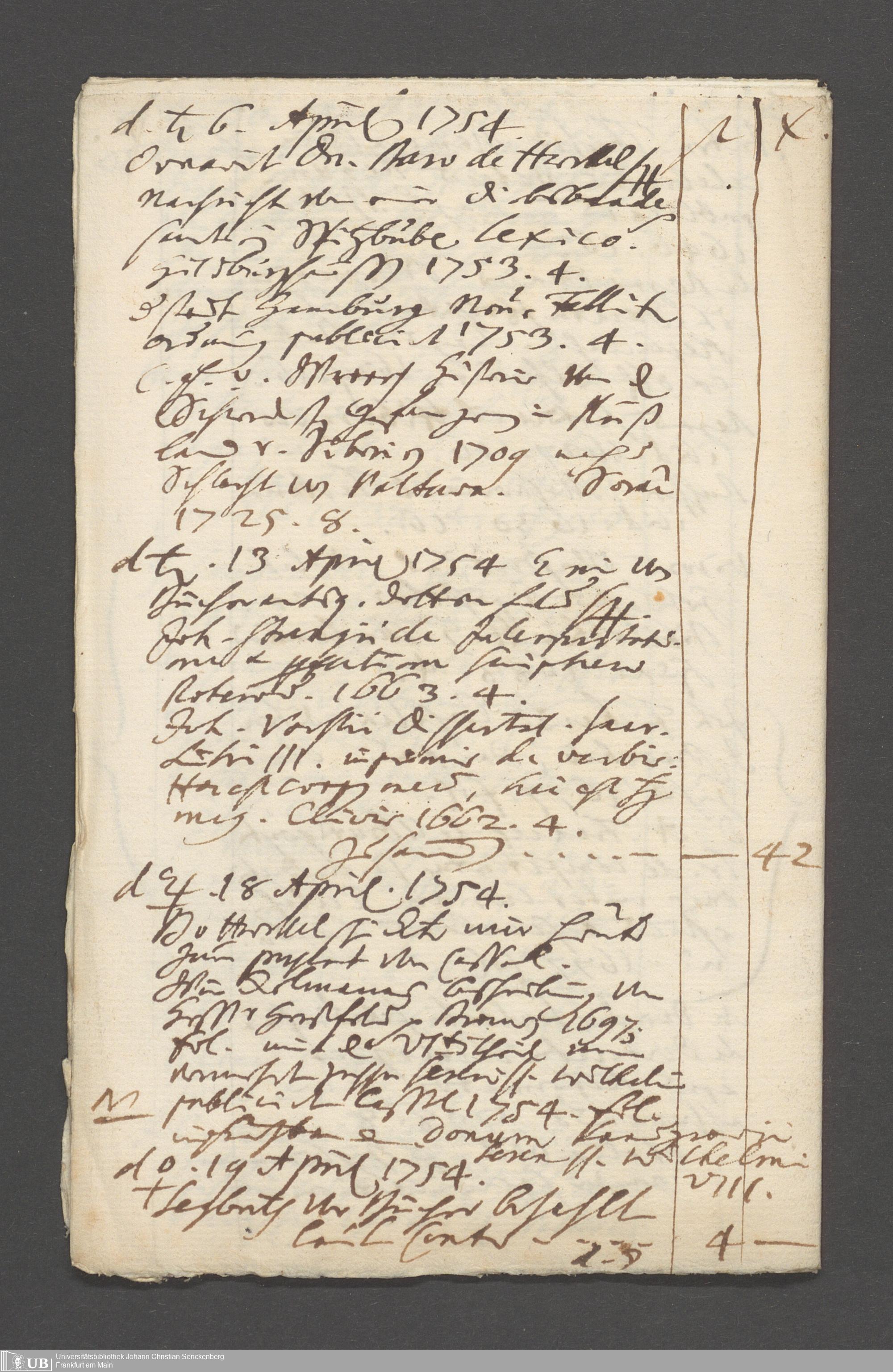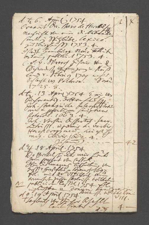 Na 31 Nachlass Johann Christian Senckenberg, 215 - Aufzeichnungen über Bücherkäufe und Schenkungen