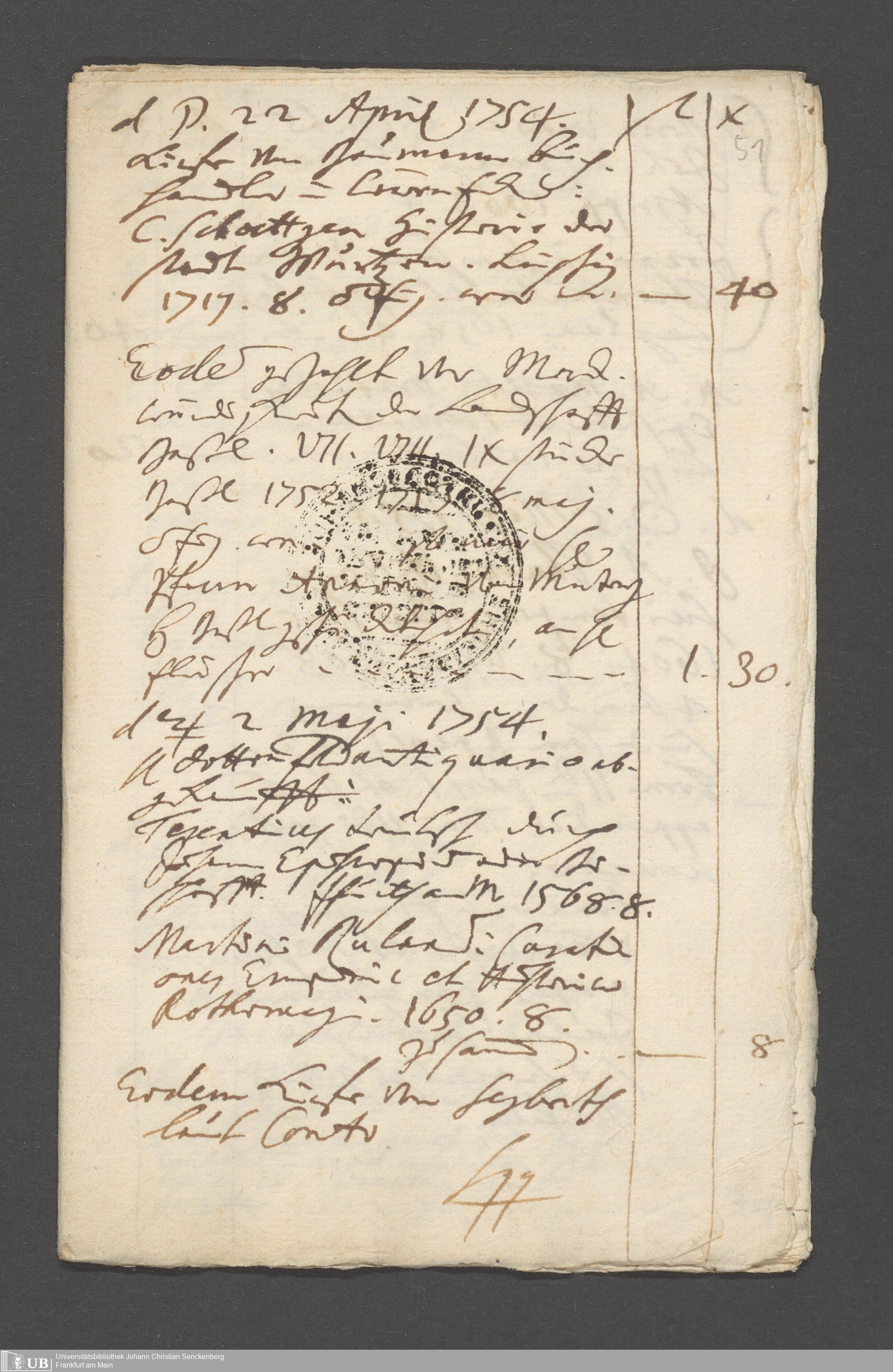 Na 31 Nachlass Johann Christian Senckenberg, 215 - Aufzeichnungen über Bücherkäufe und Schenkungen