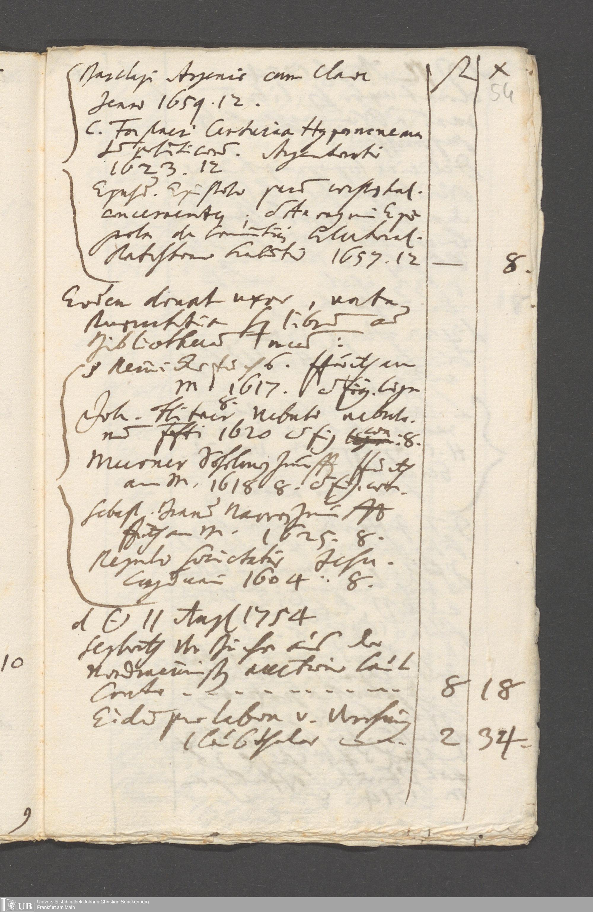 Na 31 Nachlass Johann Christian Senckenberg, 215 - Aufzeichnungen über Bücherkäufe und Schenkungen