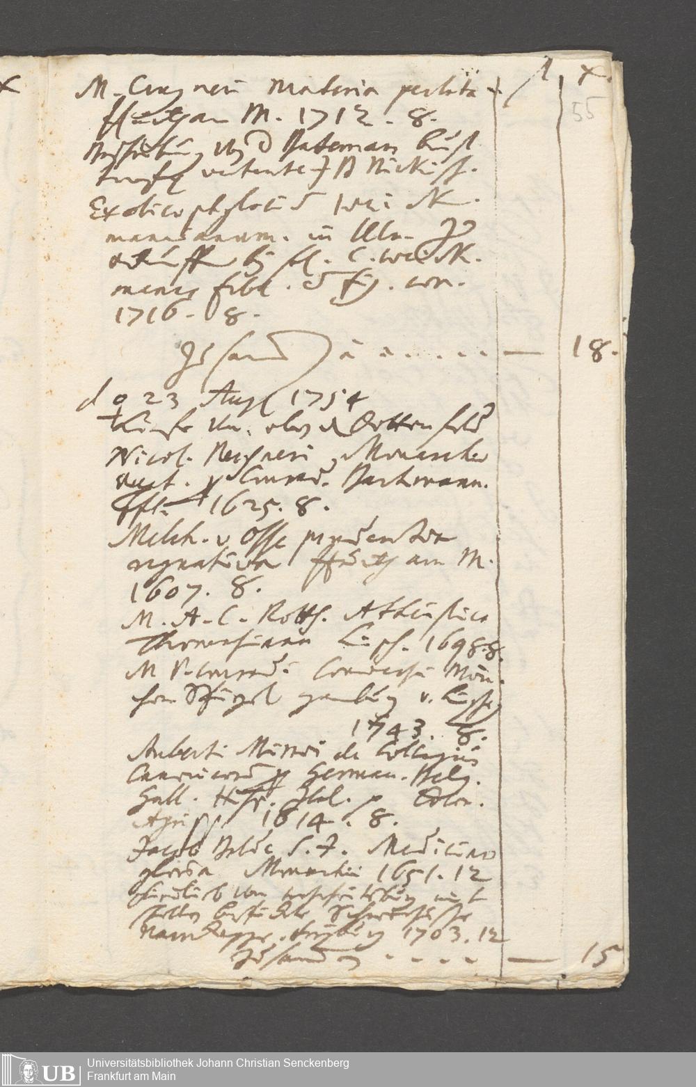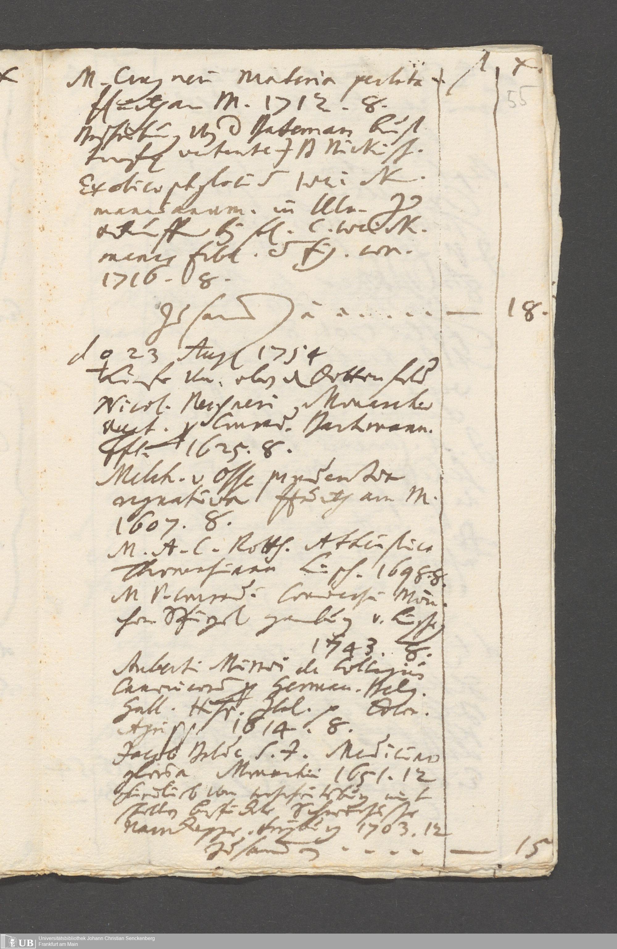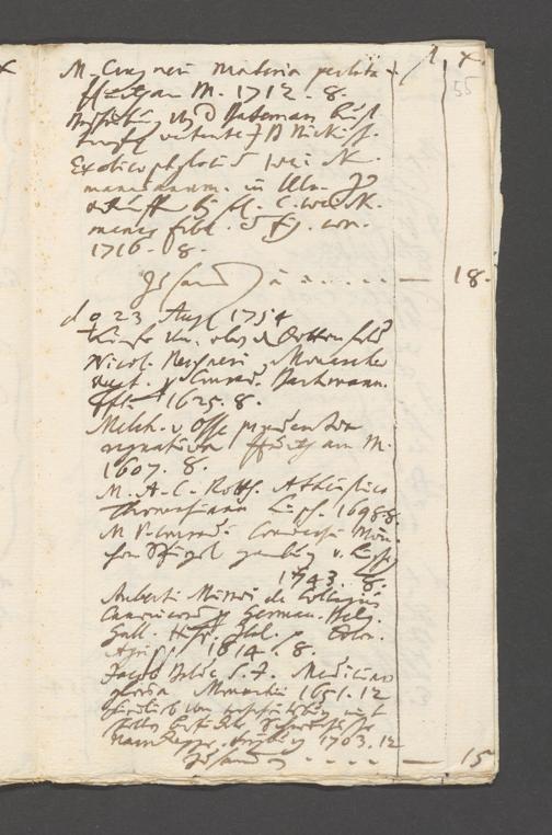 Na 31 Nachlass Johann Christian Senckenberg, 215 - Aufzeichnungen über Bücherkäufe und Schenkungen