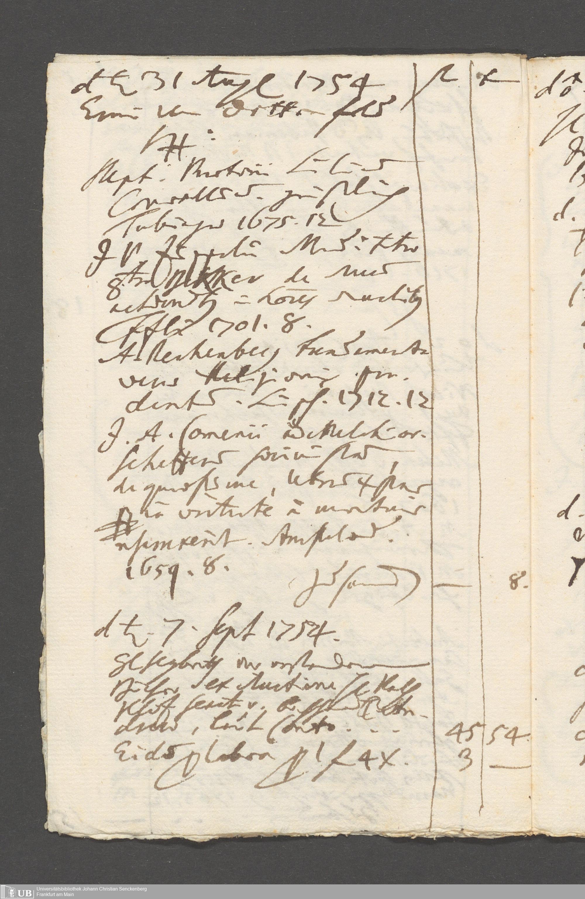 Na 31 Nachlass Johann Christian Senckenberg, 215 - Aufzeichnungen über Bücherkäufe und Schenkungen