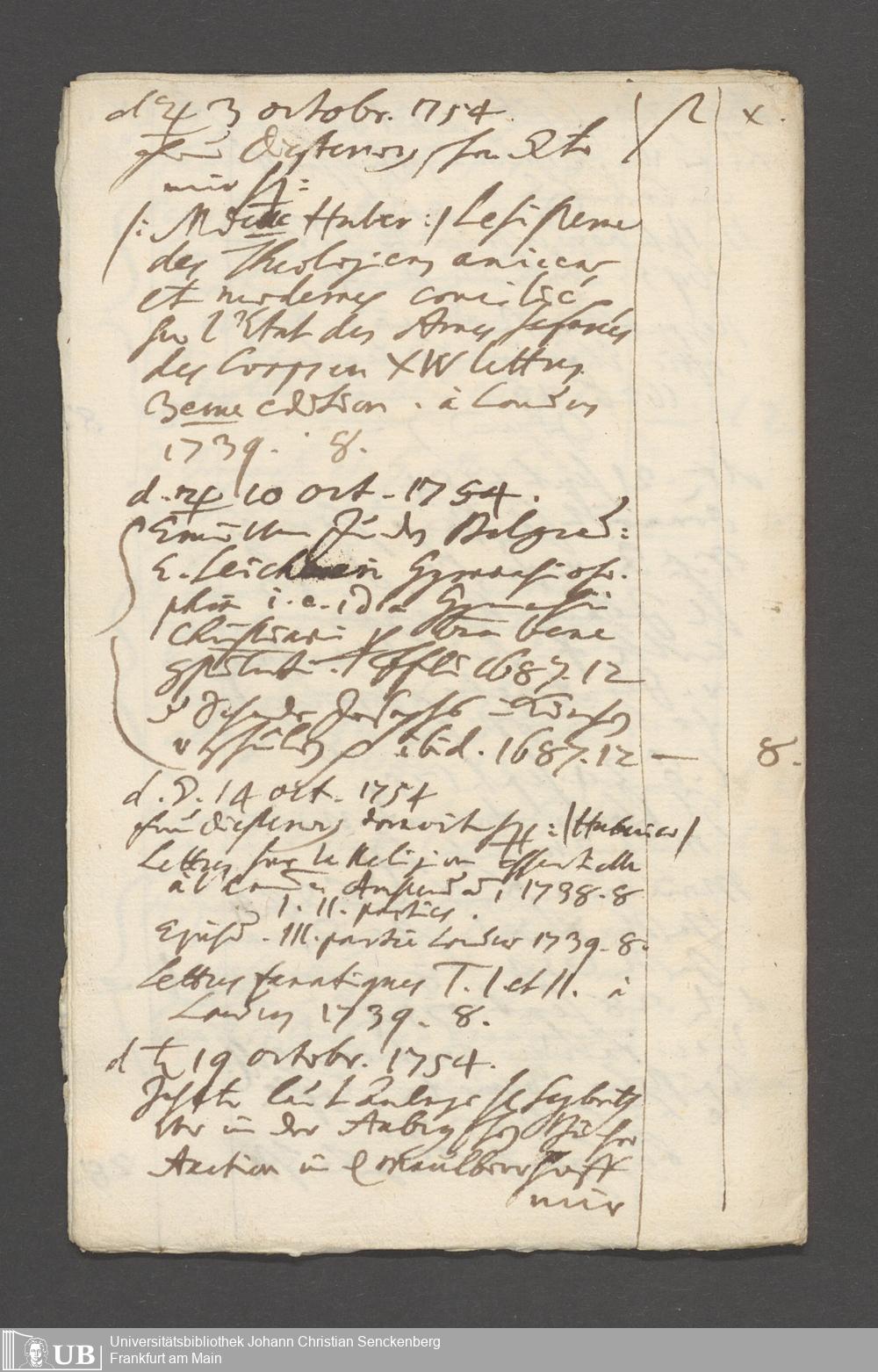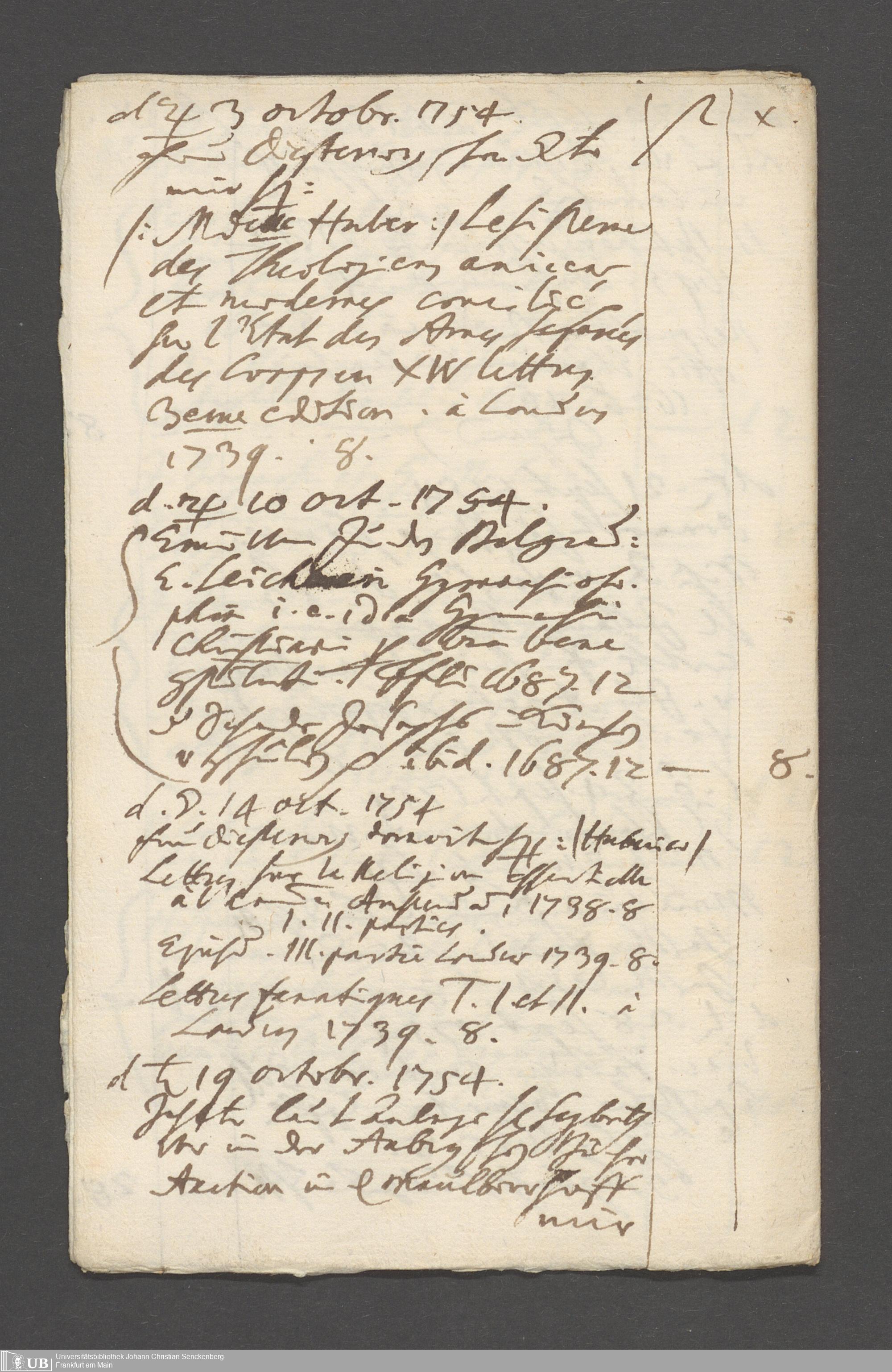 Na 31 Nachlass Johann Christian Senckenberg, 215 - Aufzeichnungen über Bücherkäufe und Schenkungen