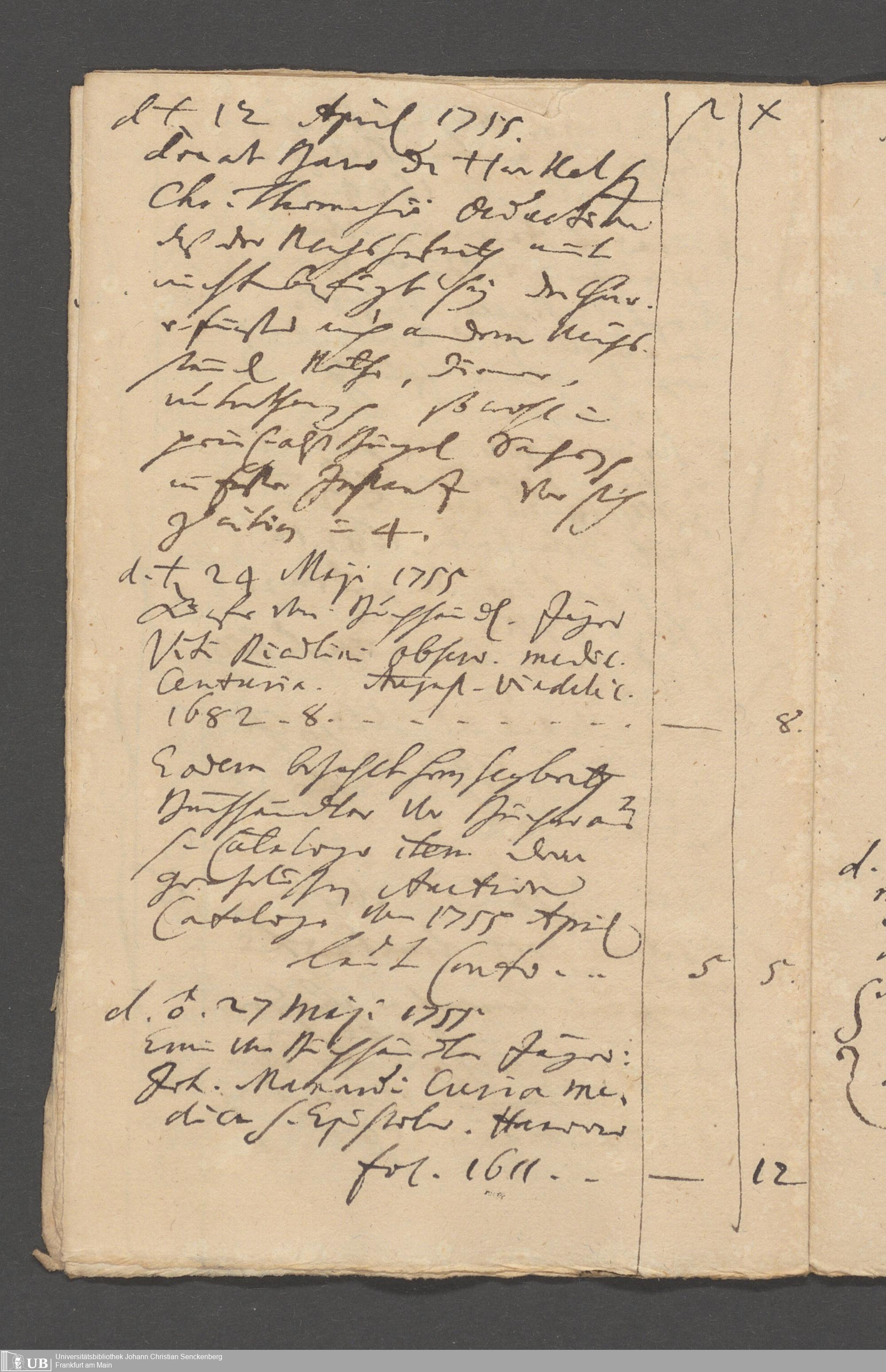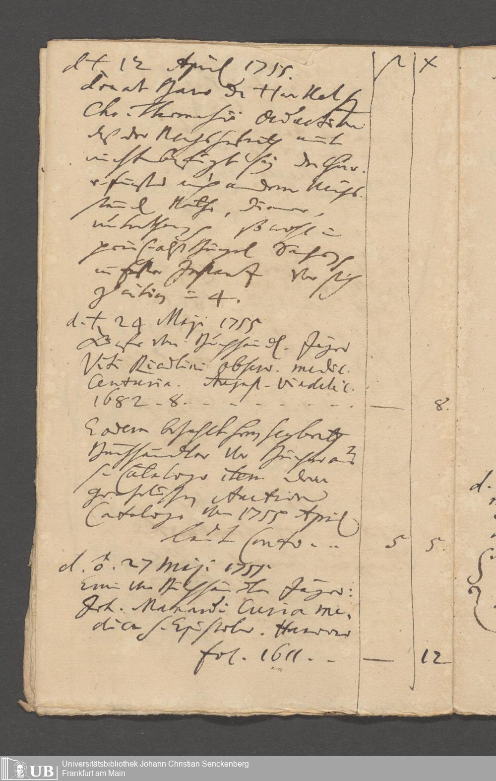 Na 31 Nachlass Johann Christian Senckenberg, 215 - Aufzeichnungen über Bücherkäufe und Schenkungen
