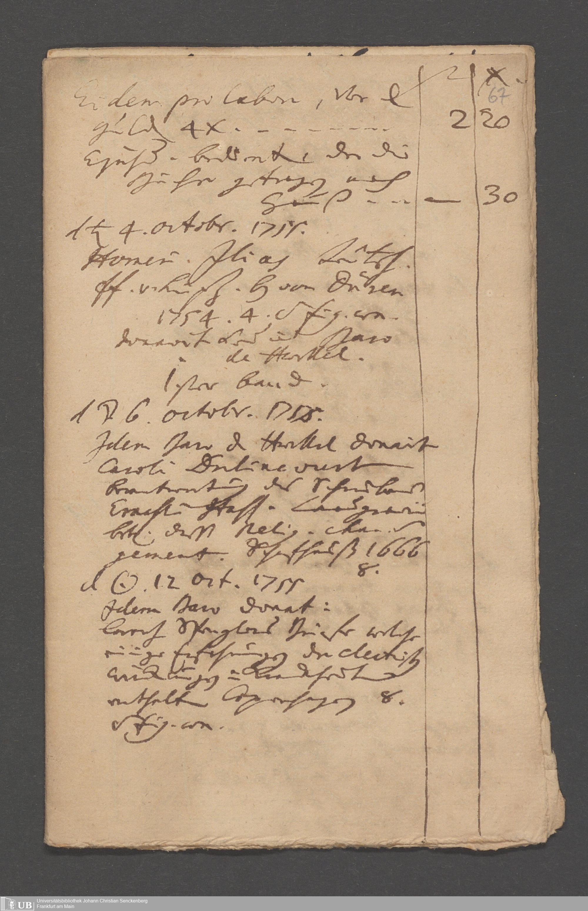 Na 31 Nachlass Johann Christian Senckenberg, 215 - Aufzeichnungen über Bücherkäufe und Schenkungen