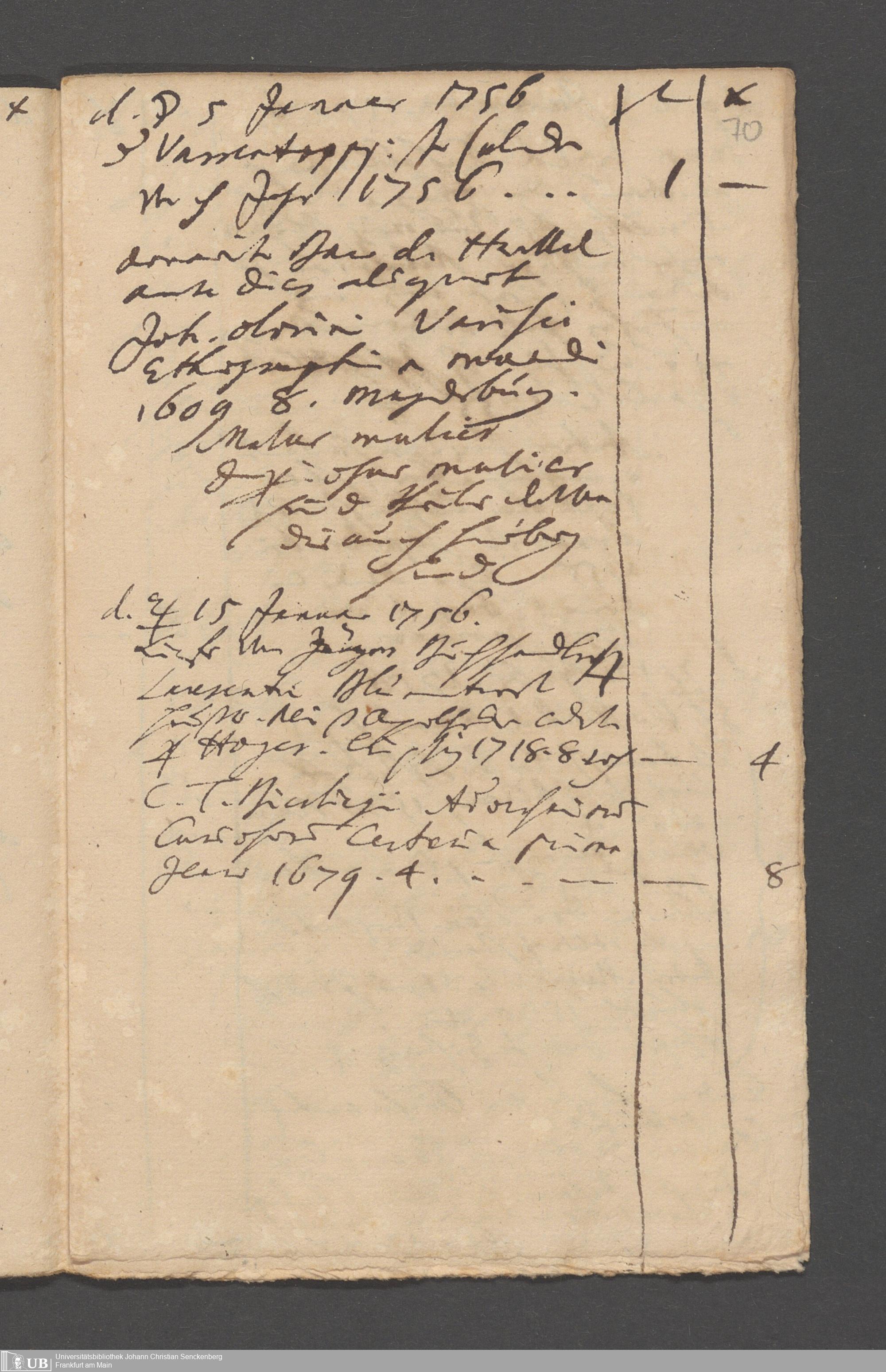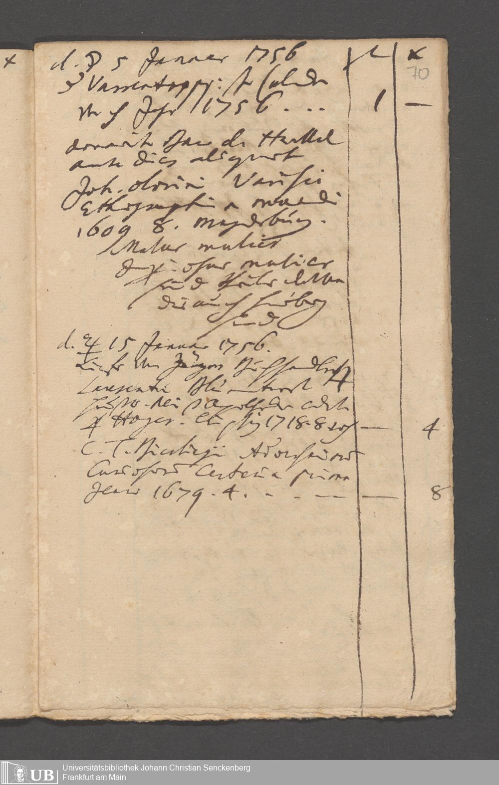 Na 31 Nachlass Johann Christian Senckenberg, 215 - Aufzeichnungen über Bücherkäufe und Schenkungen