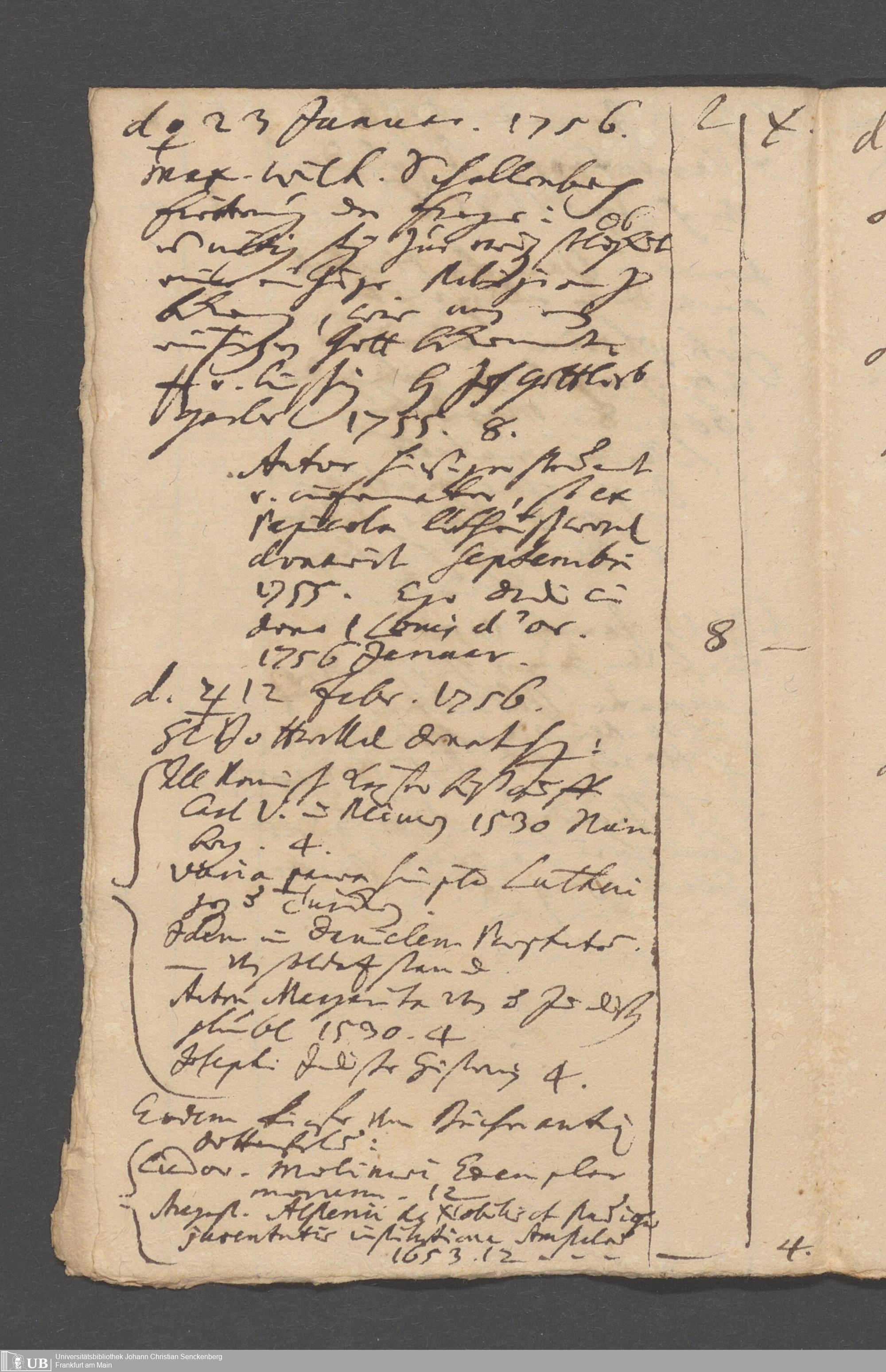Na 31 Nachlass Johann Christian Senckenberg, 215 - Aufzeichnungen über Bücherkäufe und Schenkungen