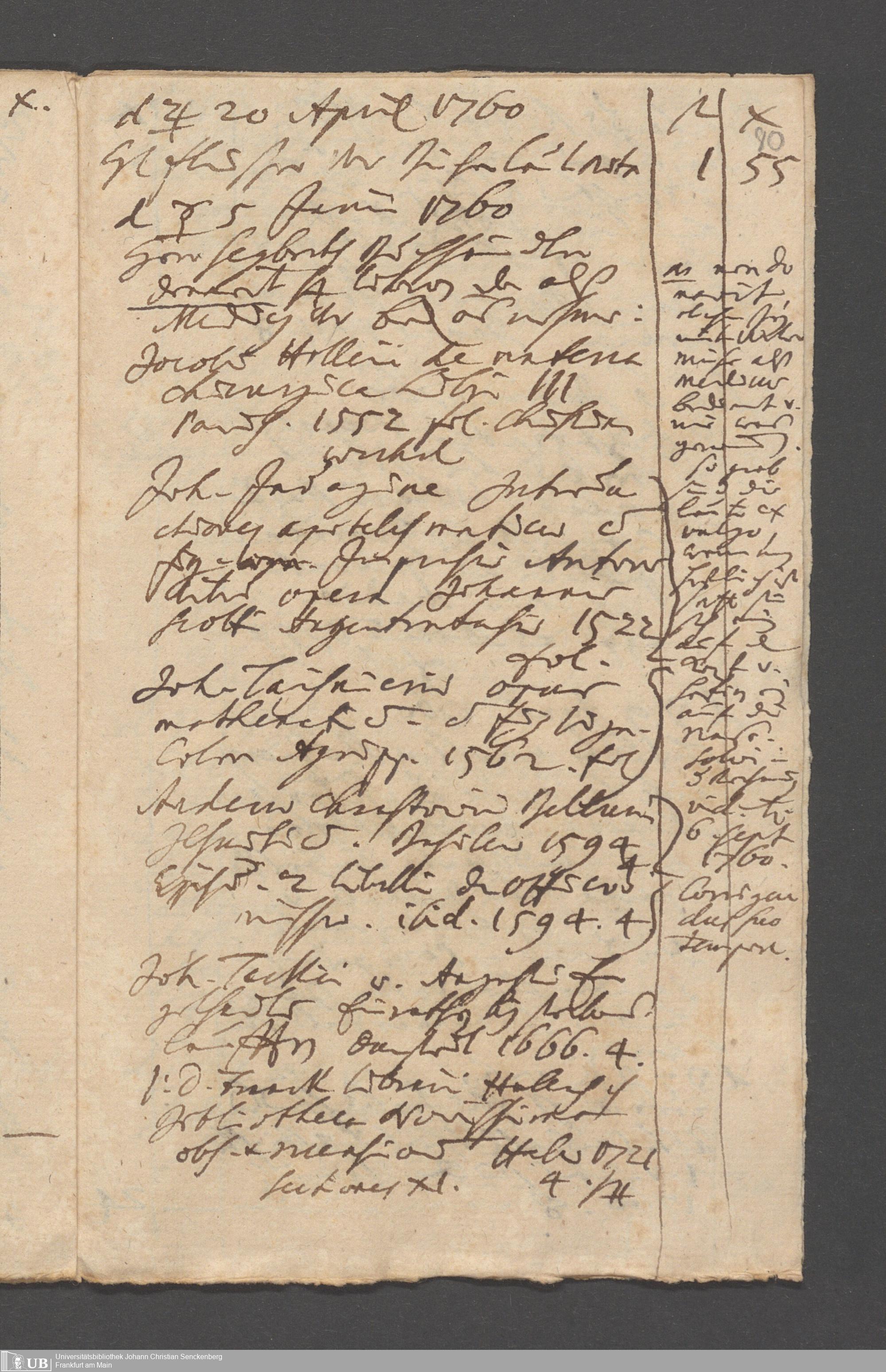 Na 31 Nachlass Johann Christian Senckenberg, 215 - Aufzeichnungen über Bücherkäufe und Schenkungen